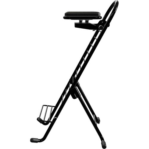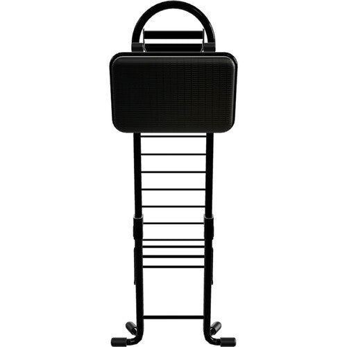 The Pro Series Folding Chair from PLATEAU CHAIRS features a vinyl leather seat with sponge cushioning. The seat is adjustable to 12 different height levels ranging from 12.5 to 33.5". The chair supports the user from a low crouch to a high-standing position. The Pro Series chair is designed for everyday use and offers health benefits besides function and comfort. Height is changed by hooking the seat onto the horizontal bars on the chair frame, ensuring proper posture. Additionally, four rubber attachments under the seat base allow tilting the seat forward and sideways. This adjusts the seat better to your body and further helps with posture. The forward-tilted position is especially beneficial because it maintains the natural state of the spine and hip, reducing stress on the back and thighs. The weight capacity is 325 lb.