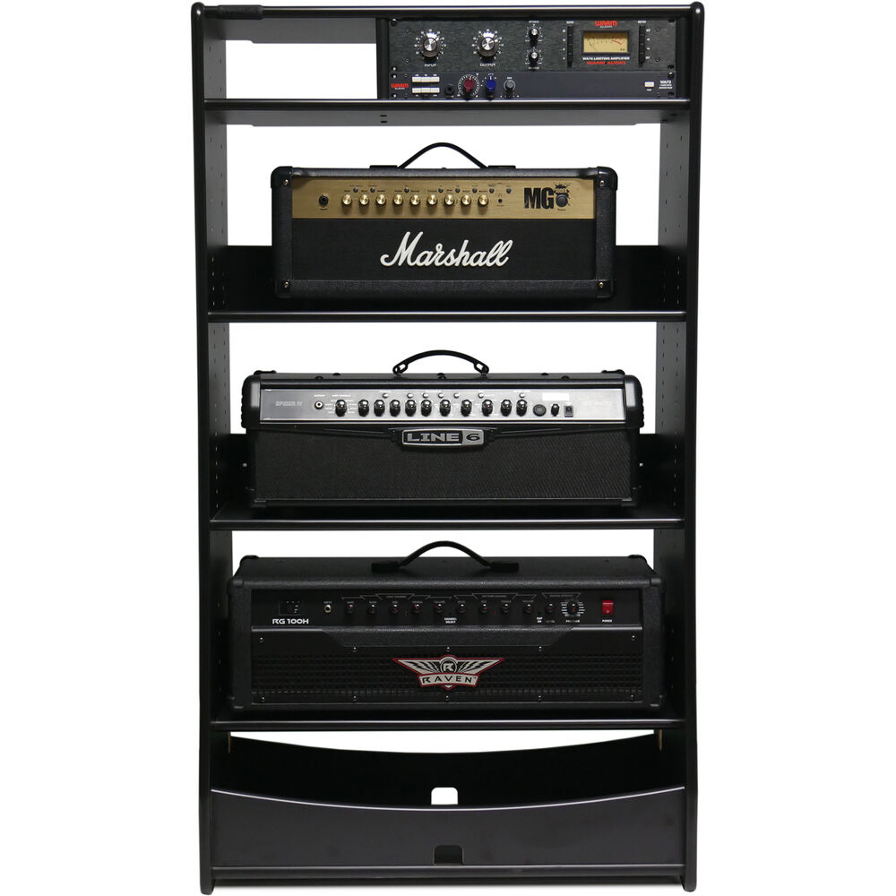 - RAB Audio Guitar Studio Shelving Unit with 3 Shelves and 3 RU (Black)