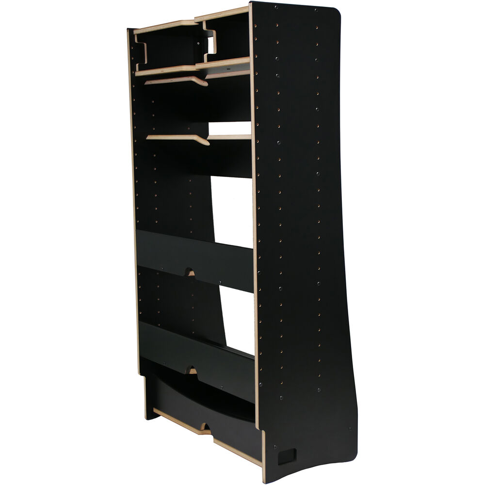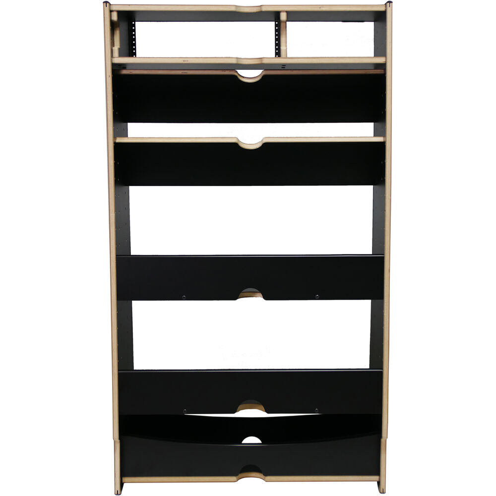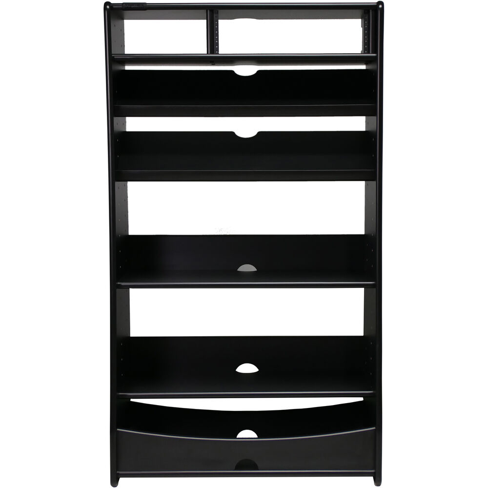 Take jam sessions to the next level with the Guitar Studio Cabinet X3 with Two Height-Adjustable Amp-Head Shelves, 3 RU and Two Guitar-Pedal Boards by RAB Audio. This studio shelving unit supports intermediate and experienced guitar players with one 3 RU bay and two height-adjustable amp-head shelves. Two guitar-pedal decks unlock all your gear, so you can easily find the perfect guitar tone. Stash power and audio cables in the cable cubby. Enjoy a clean setup thanks to built-in cable cutouts on each level of the cabinet. PVC molded trim protects the unit from bumps and scrapes.