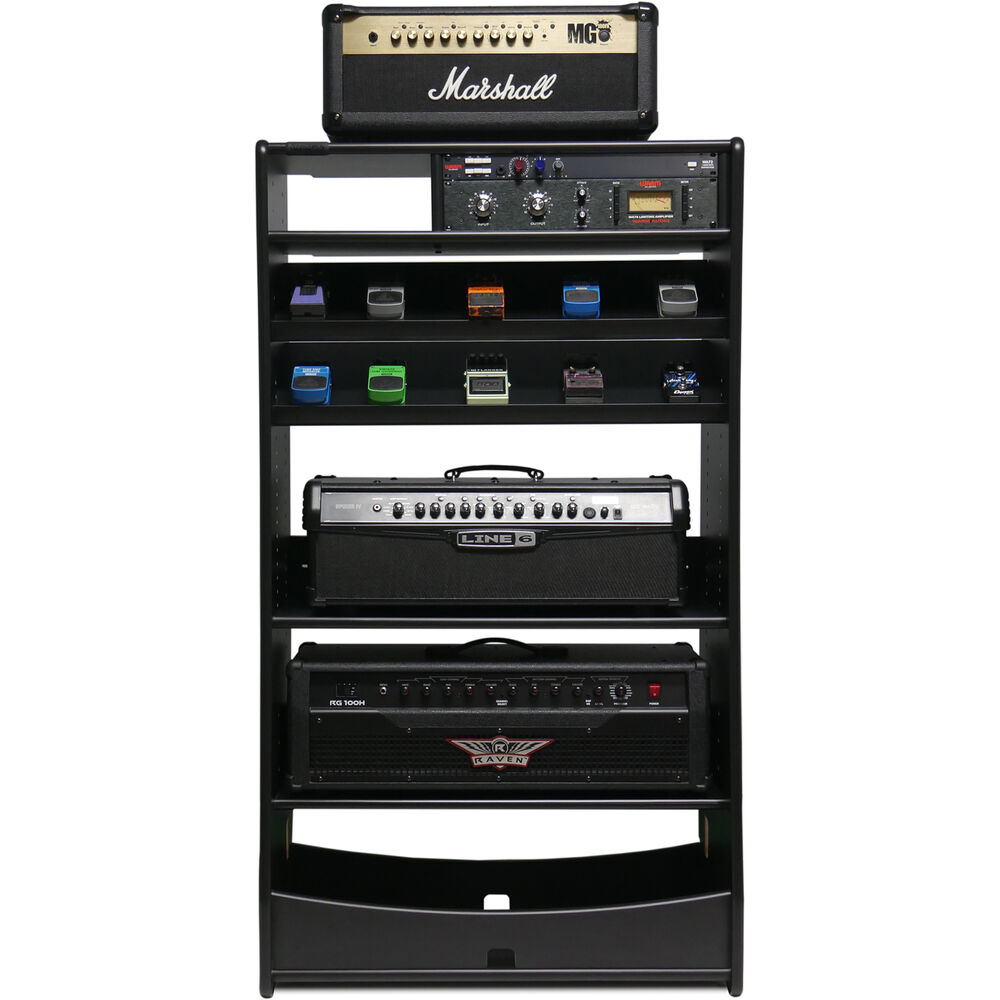- RAB Audio SRS X3 Shelving Unit with 3 RU, Two Amp-Head Decks, and Two Guitar-Pedal Decks (Black)