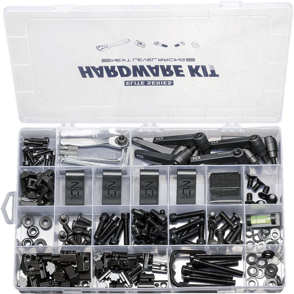 Add spares, replacements, and new parts to your Elite Series racing sim cockpit with the Elite Hardware Kit from Next Level Racing. This kit includes a variety of nuts, bolts, tools, and washers for additional add-ons to your Next Level Racing cockpit.