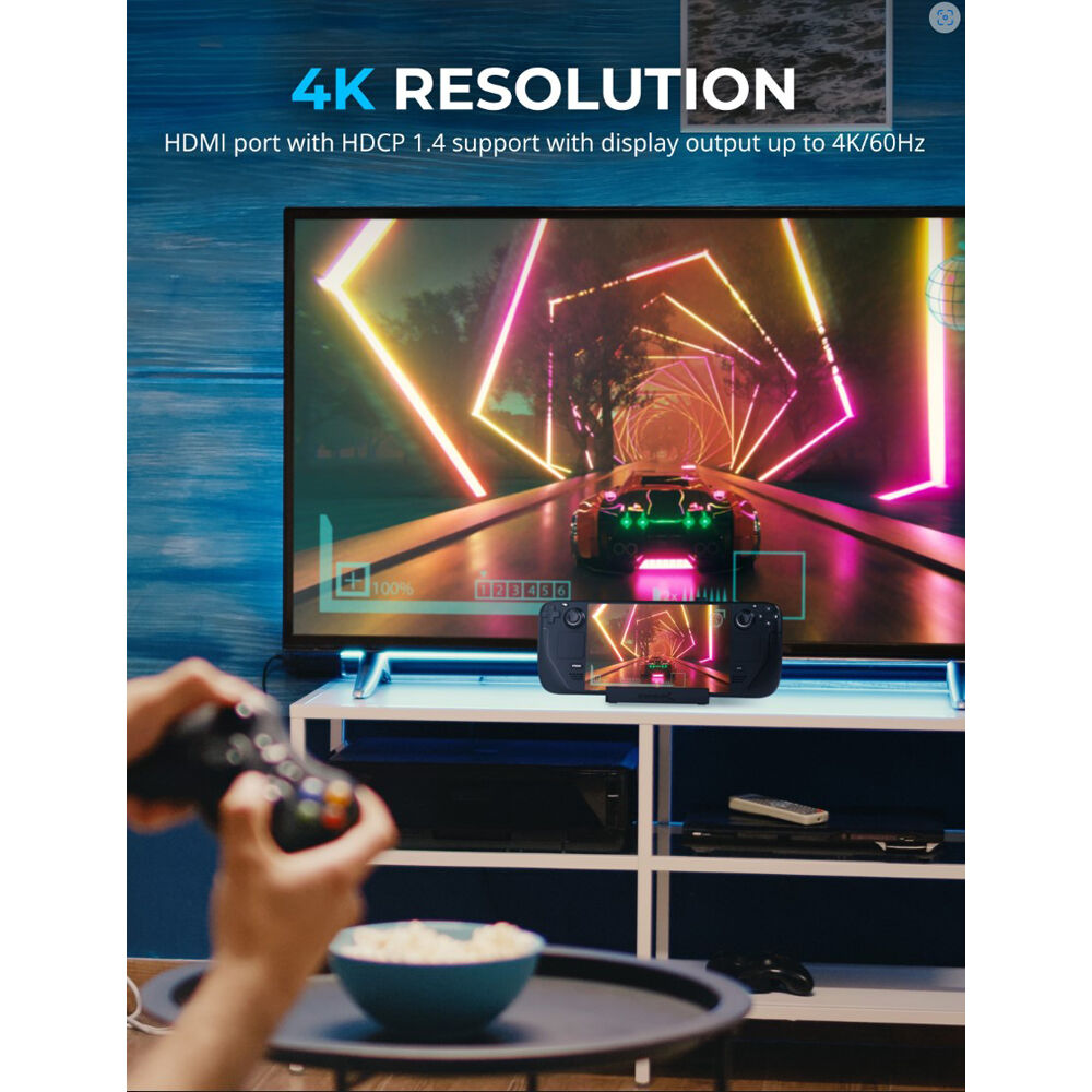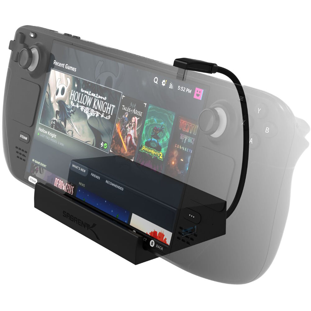 Expand the utility of your Valve Steam Deck with the Sabrent 6-Port Docking Station. Designed to cradle your device and deliver robust connectivity options, this docking station simplifies your setup whether you play on your television or monitor.