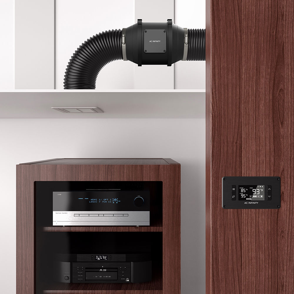 The 4" CLOUDLINE T4 Quiet Duct Fan System from AC Infinity is designed to quietly cool AV equipment rooms and closets, and to ventilate various air circulation and exhaust projects. Featuring an inline mixed-flow design, the duct fan can maintain airflow even in high static pressure applications. The system features a DC motor with PWM control for a quiet and energy efficient performance. The motor box containing the fan's impeller and blades can be detached from the mounted frame for easy cleaning and maintenance. It is IP44 rated, making it highly resistant to dust and liquids, and performs well even in harsh environments.