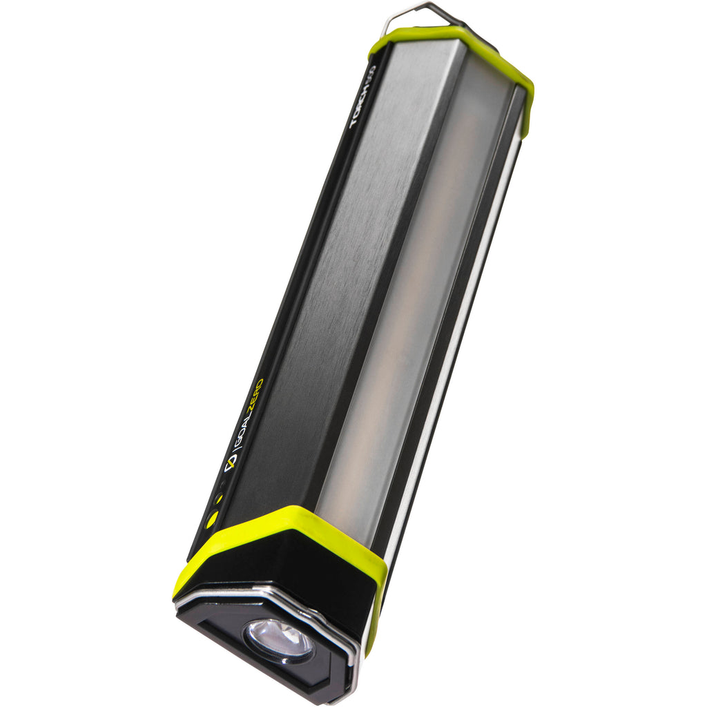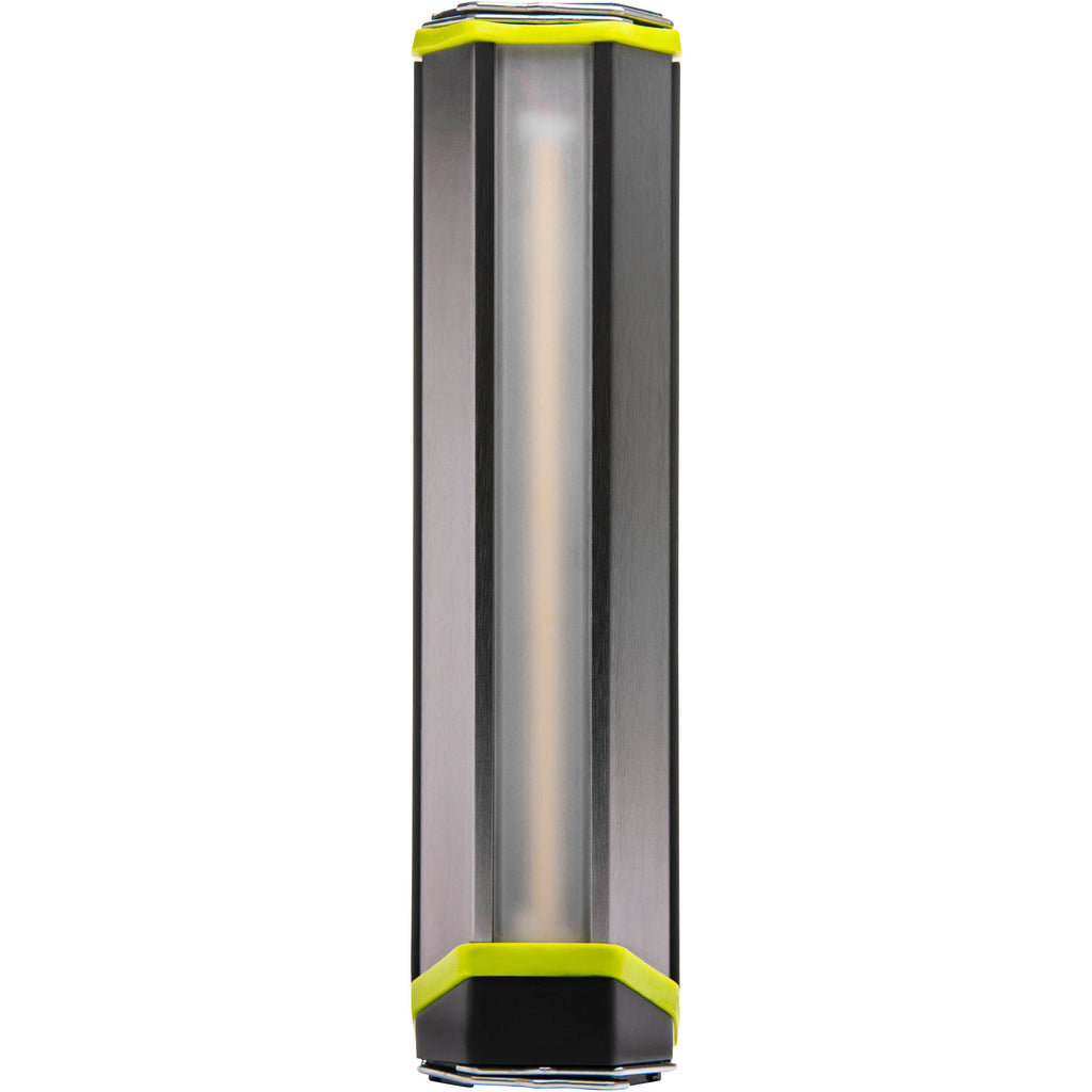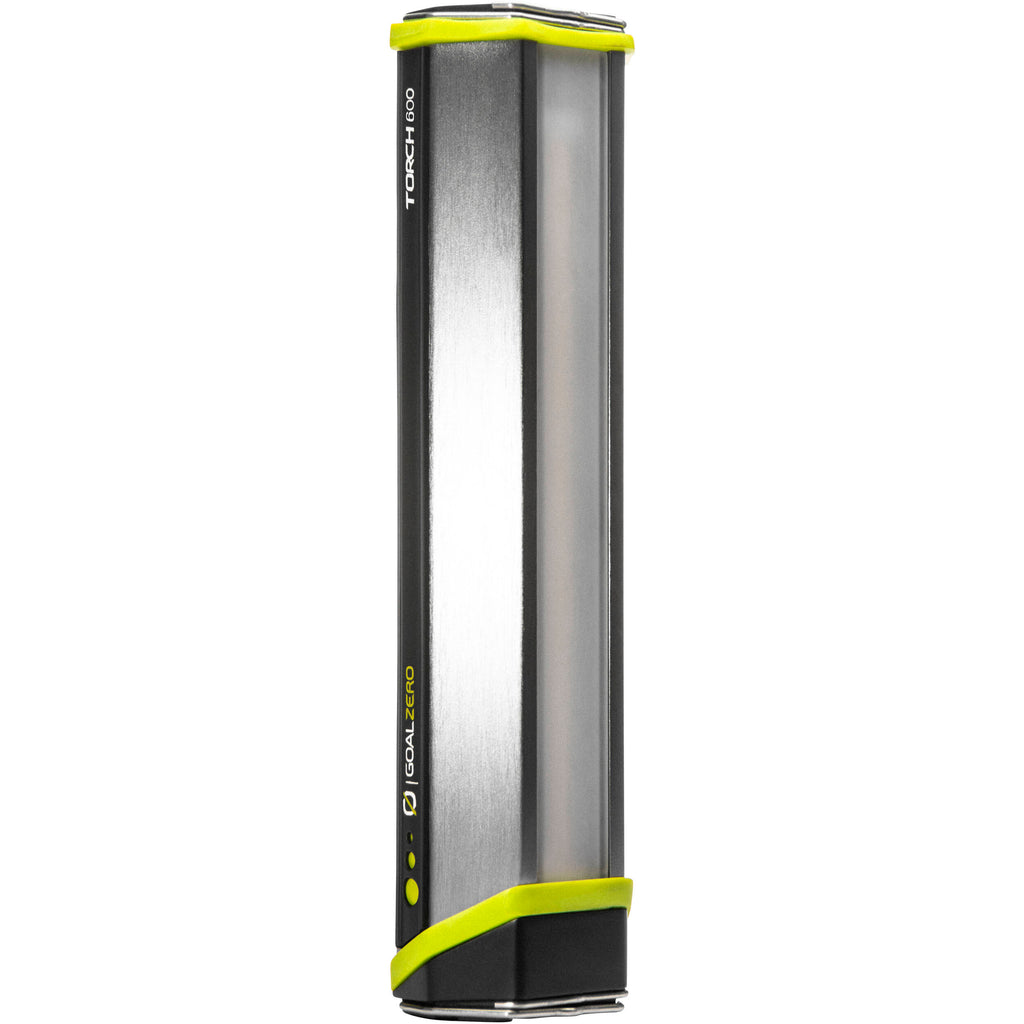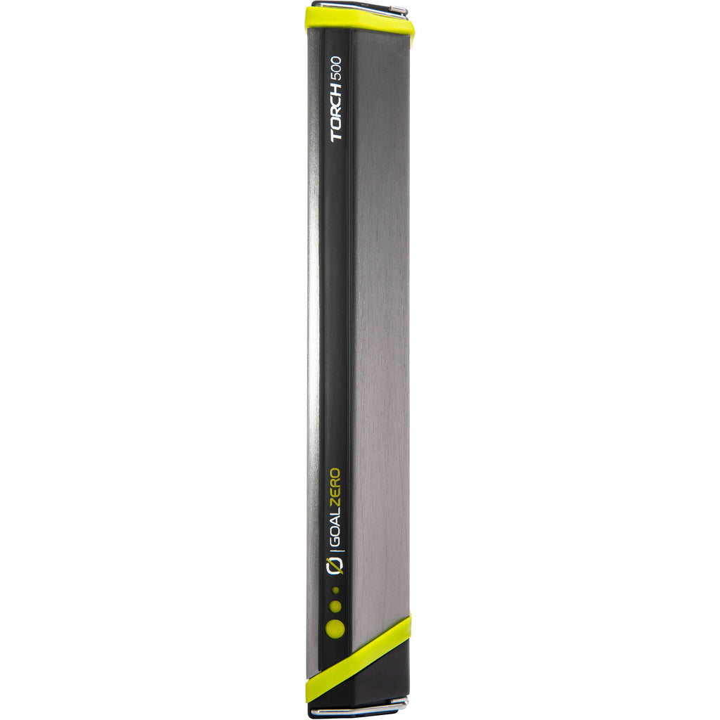 Built for outdoor adventure but equally useful as a home emergency light, the Goal Zero Torch 500 Flashlight offers versatile lighting options and can even make its own power. The Torch 500 is fitted with a spot beam flashlight and a long flood light, each with 150- and 300-lumen brightness settings. You can use both lights together for a total output of 500 lumens. Power comes from a Li-ion NMC battery that can be recharged from the built-in, 1.2-watt monocrystalline solar panel along the back of the light. The battery can also (and more quickly) be recharged by a separate solar panel, such as the Goal Zero Nomad, or from a USB source. With a capacity of 5200mAh, the battery can hold enough power to charge or boost your phone, headlamp, or other device, and a USB Type-A output is provided for the purpose. Runtime on a fully charged battery ranges from three hours on high power to 50 hours on low. Rainy weather won't damage this light�it's rated IP67 waterproof, capable of withstanding submersion to 3.3' deep for 30 minutes.