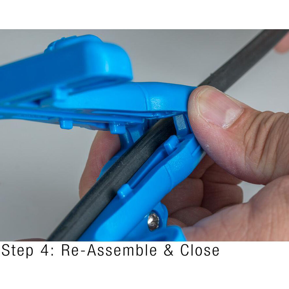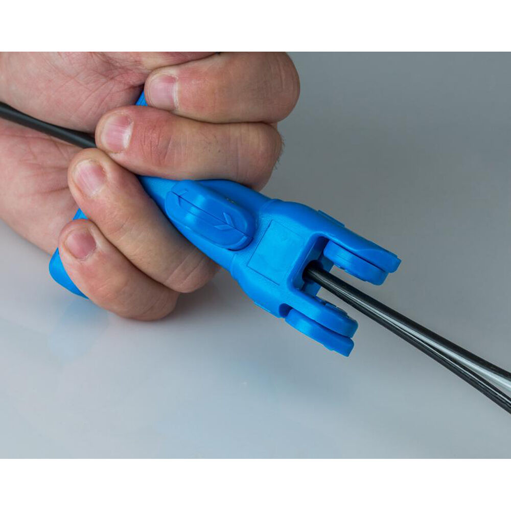 - Slits both sides of the jacket simultaneously, allowing easy access to fiber or strength members