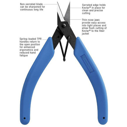 - Thin-nose jaws provide easy access into tight places and allow for flush cutting of Kevlar to the fiber jacket