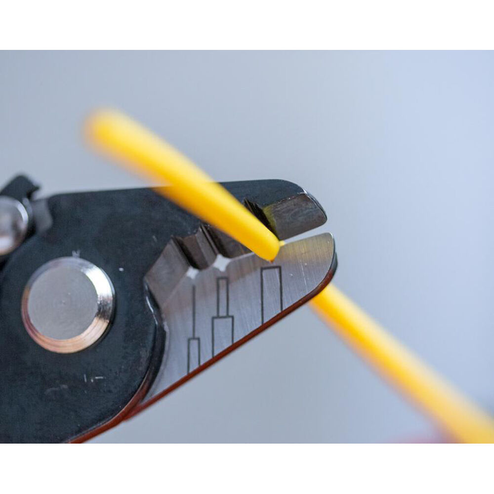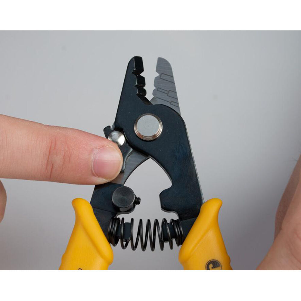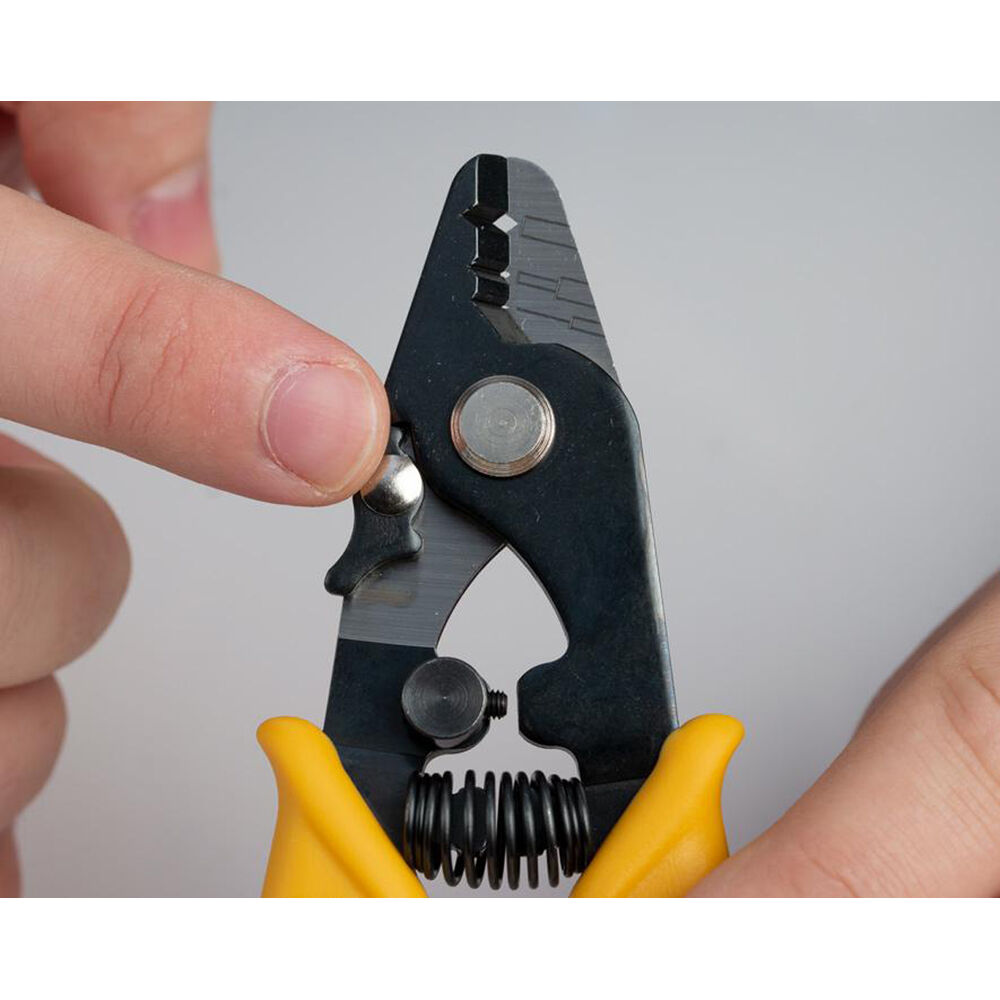 - Strips the 1.6 to 3mm fiber cable jacket, 600 to 900-micron buffer coating, and 250-micron acrylate coating to expose the 125-micron glass fiber