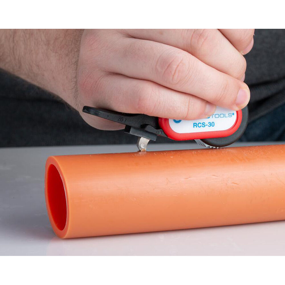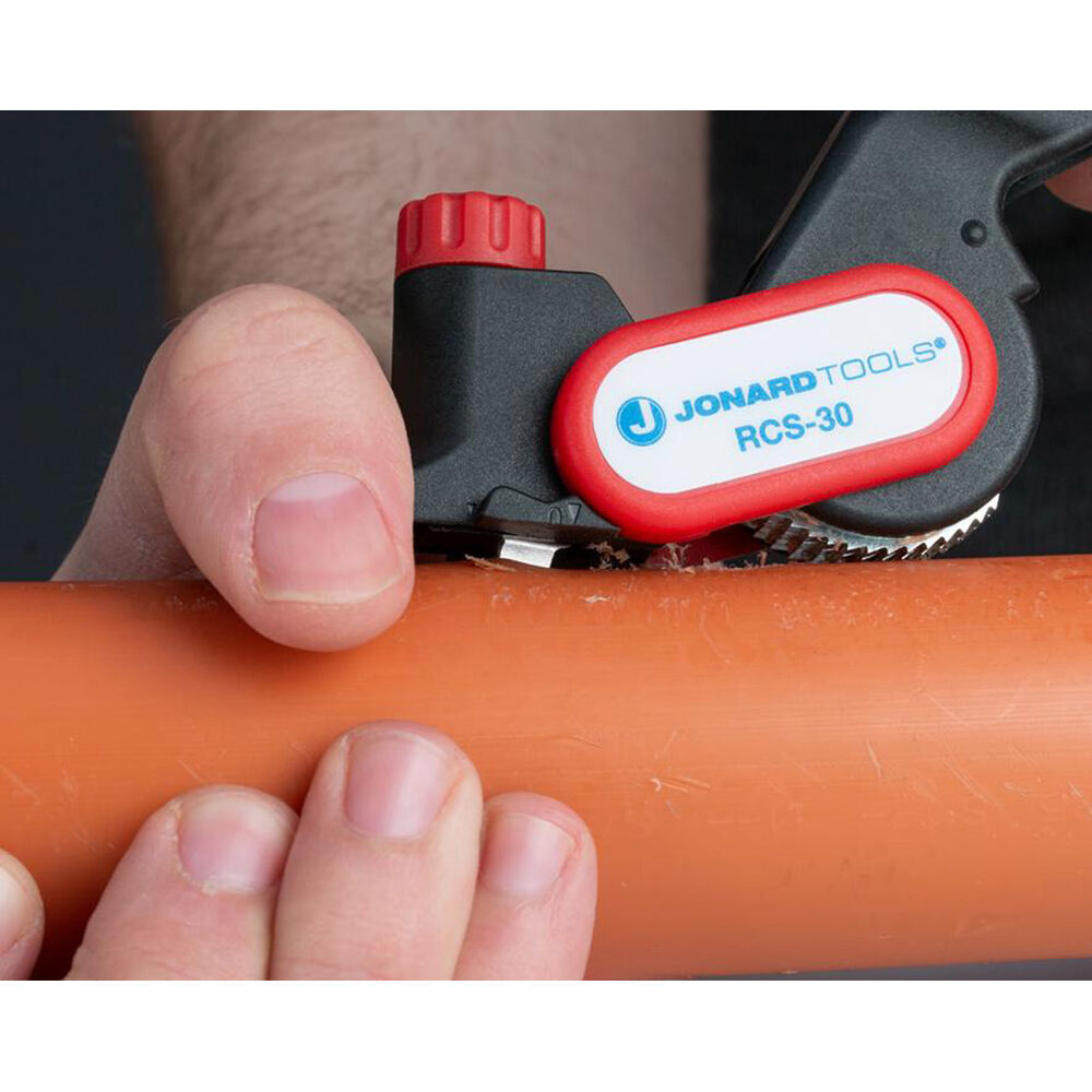 Designed to create mid-span slits and window cuts in ducts and heavy-duty cables, this Jonard Tools RCS-30 Ratcheting Duct and Cable Slitter is the perfect tool for slitting and ringing cables or ducts greater than 25mm in diameter.