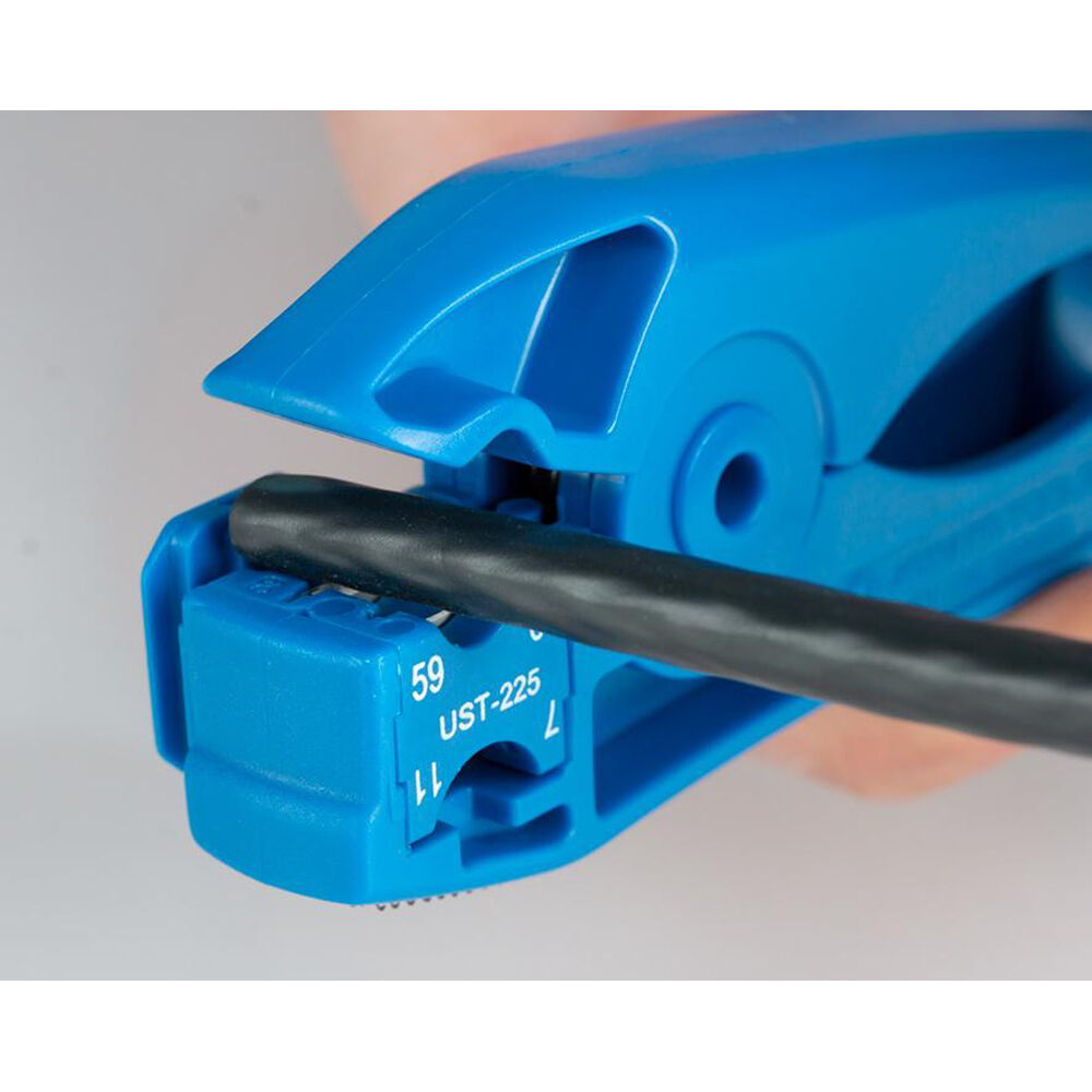 The Jonard Tools UST-125 COAX Stripping Tool with Cable Stop is designed to strip RG59 and RG6 standard, tri- and quad-shield, N48, RG7, and RG11 coaxial cables for quick-and-easy termination.