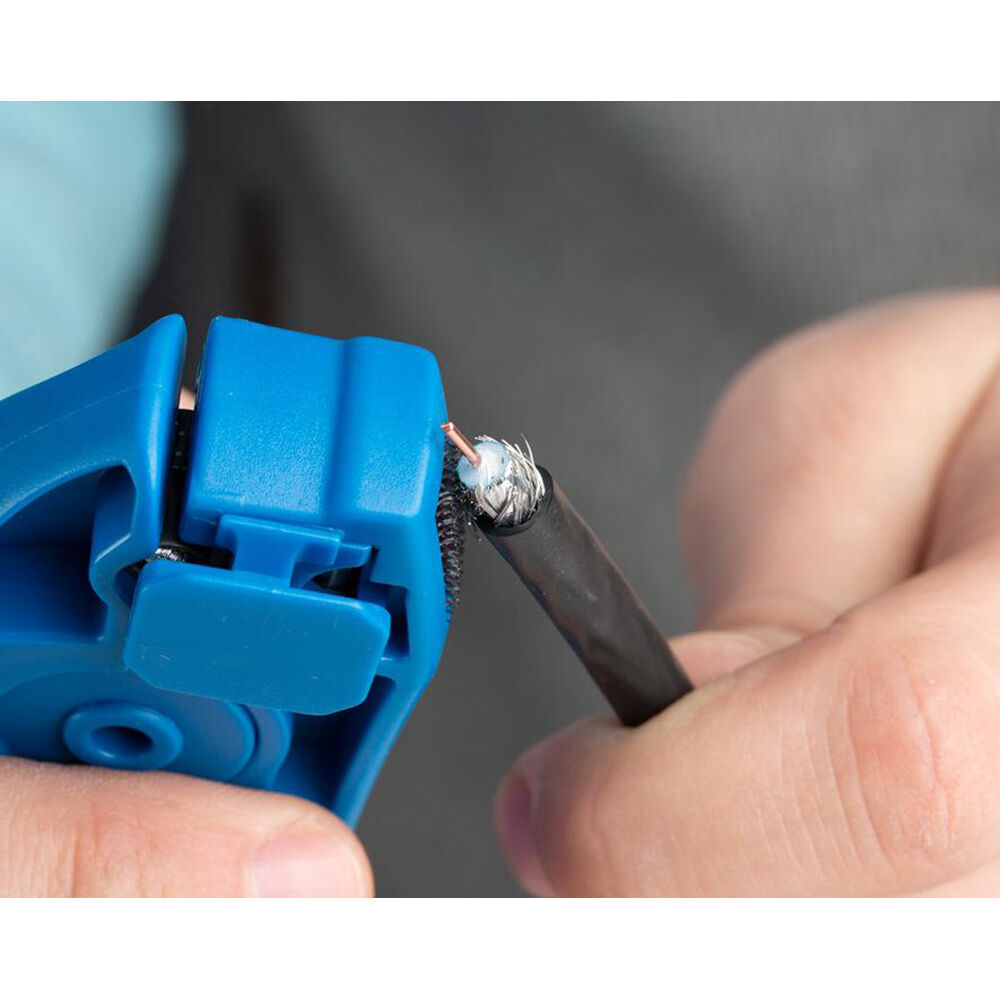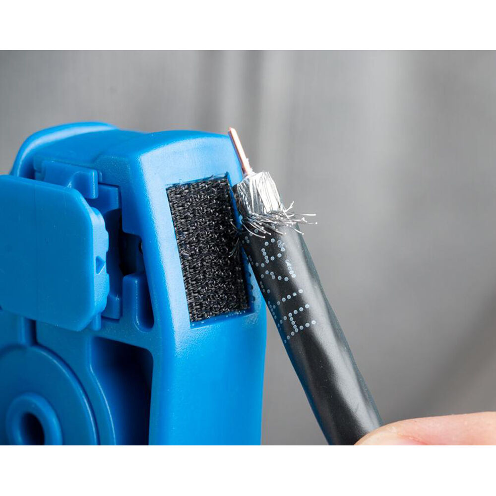 - Hook-and-loop strip on the bottom of the tool folds back the braided shield on the cable with ease