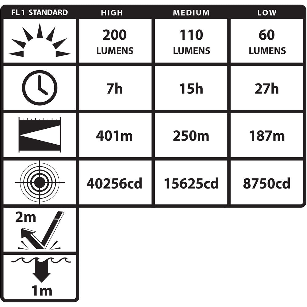 Lumen Output | Low: 60 Lumens Medium: 110 Lumens High: 200 Lumens |