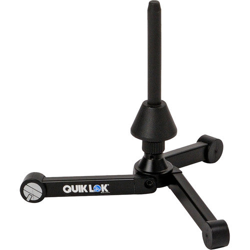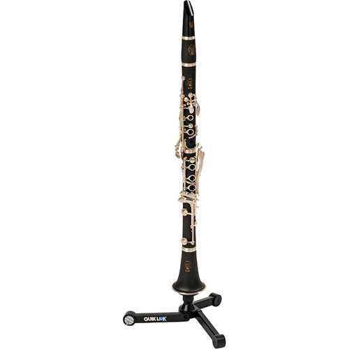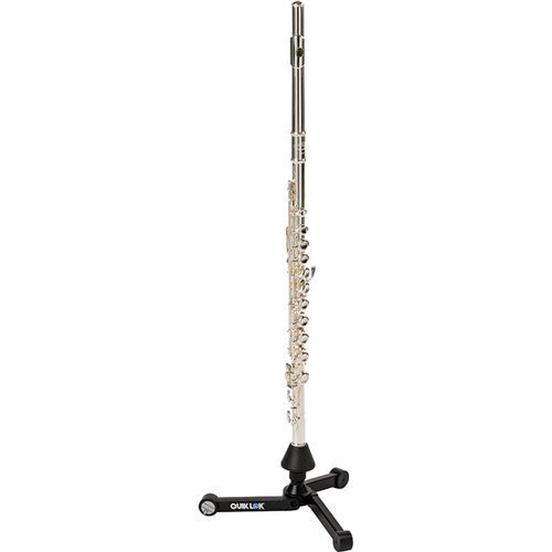 The black WI-996 Stand for Flute, Clarinet, or Soprano Saxophone from QuikLok is a compact, pocket-sized stand that will accommodate flute, clarinet, or soprano saxophone instruments comfortably and securely. It can be used in home, live stage, studio, or rehearsal applications and is equipped with an all-metal tripod base that provides maximum stability for the instrument. The WI-996 features a non-scratch, plastic injection-molded peg to protect the instrument's finish. In addition, the stands design allows you to detach the peg and store it within the base for a compact size for travel.