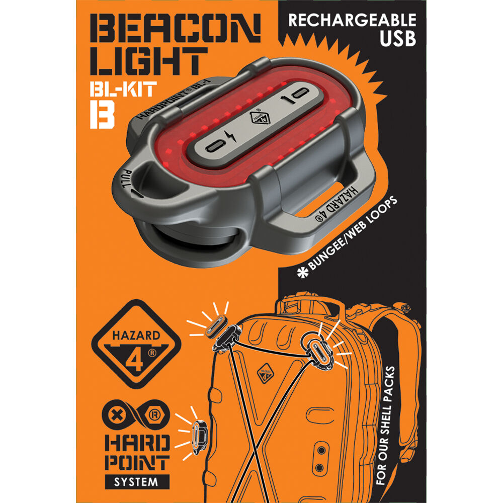 Add a light to your Hazard 4 pack or bag with this Multi-Mount Beacon LED Light Kit-B. This light kit screws into your accessories via its rubber boot and hardware. The molded loops and screw backer let you attach this light to cords, carabiners, or .5" thick webbing. The one-button control lets you choose one of three blinking or intensity modes.