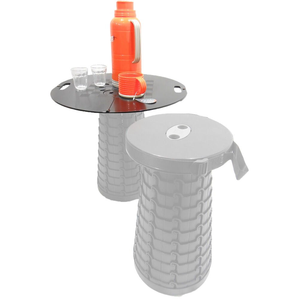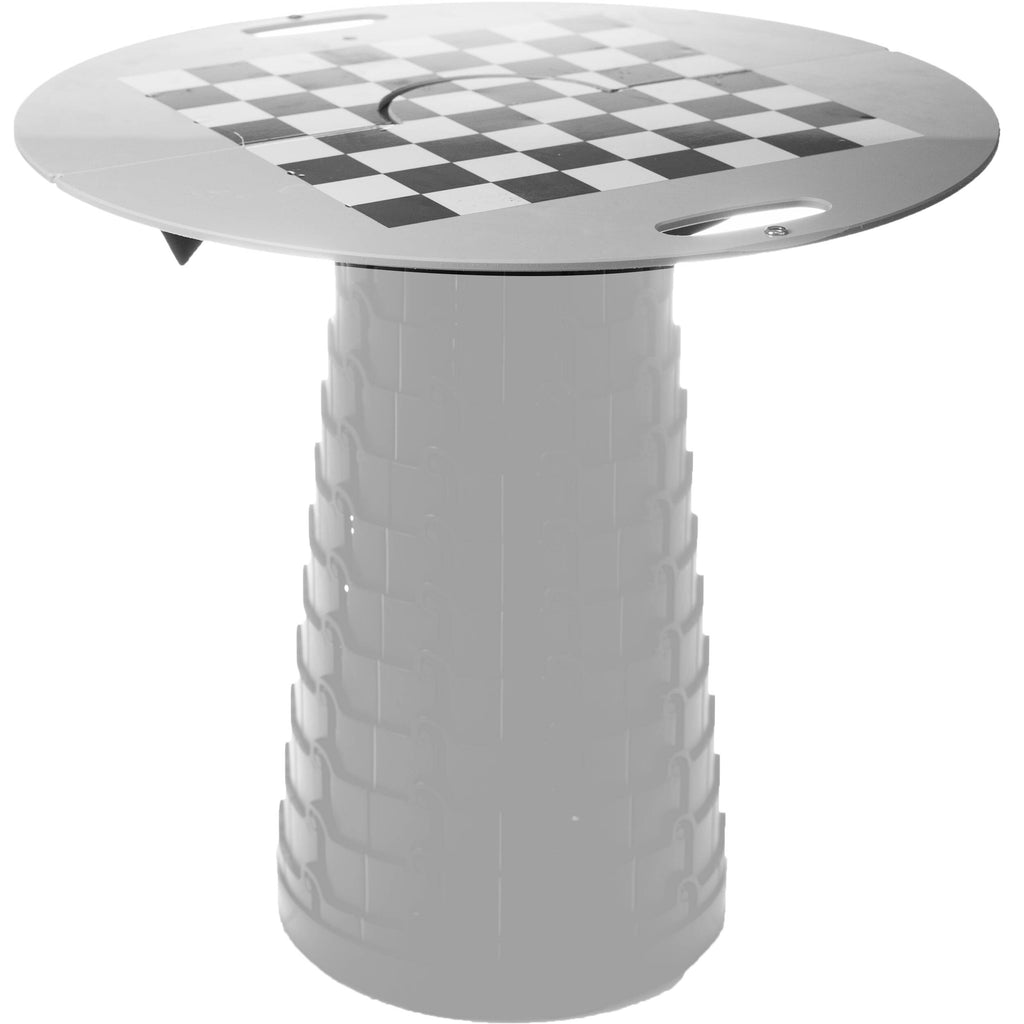 Convert your Mini Max Portable & Collapsible Stool into a surface for work, games, or snacks with this Table. The 19.7" round table top even has a checkers/chess board. The table top is easily detached from the stool and folds in half for transport�and it can also serve as a carrier for up to four Portable Stools. Two of the stools in their collapsed state can be attached to either side of the folded table, and the handle makes it easy to carry the whole assembly.
