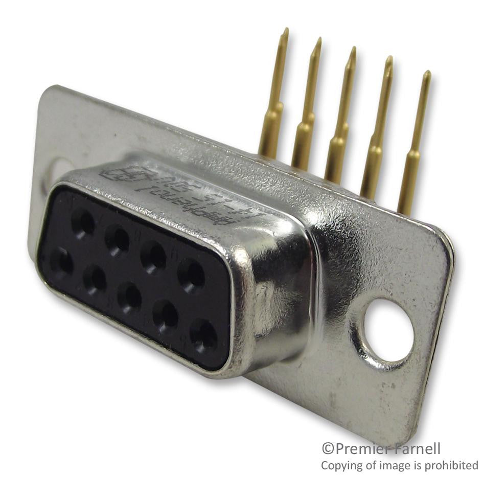 This is a D Sub Connector, 9 Contacts, Receptacle, DE, DF Series, Steel Body, Through Hole product from AMPHENOL with the model number L77DFE09S1AON