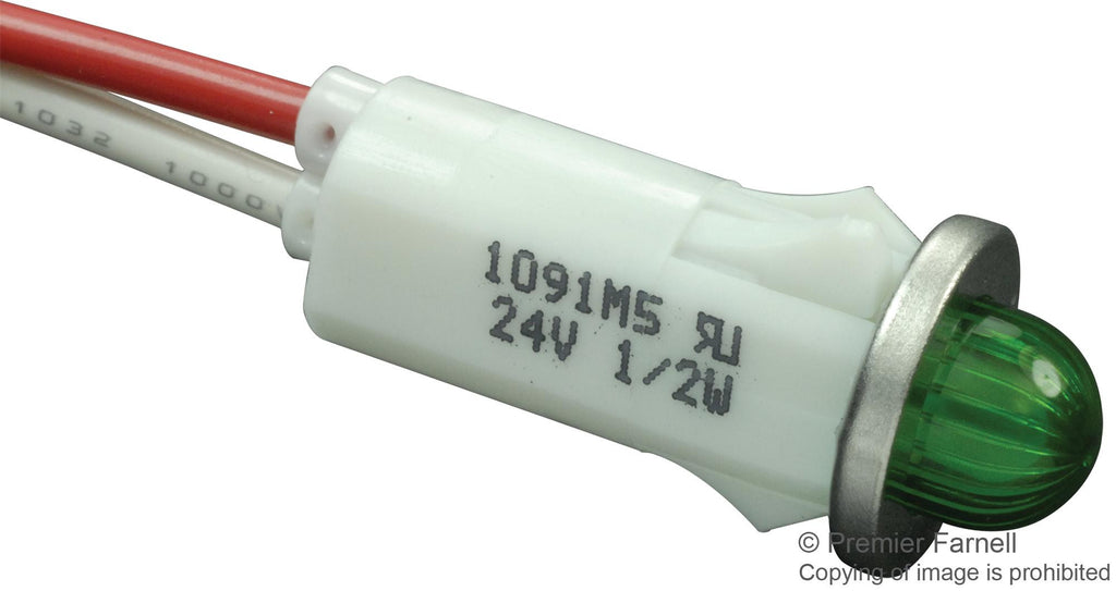 CHICAGO MINIATURE LIGHTING 1091M5-24V PANEL MOUNT INDICATOR, LED, 12.7MM, GREEN, 24V