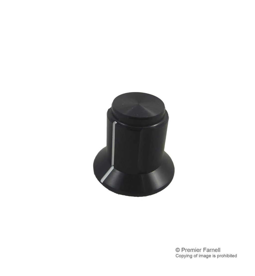 This is a Knob, Round Shaft, 6.4 mm, Aluminium, Round with Indicator Line, 18.8 mm product from MULTICOMP with the model number KB00046