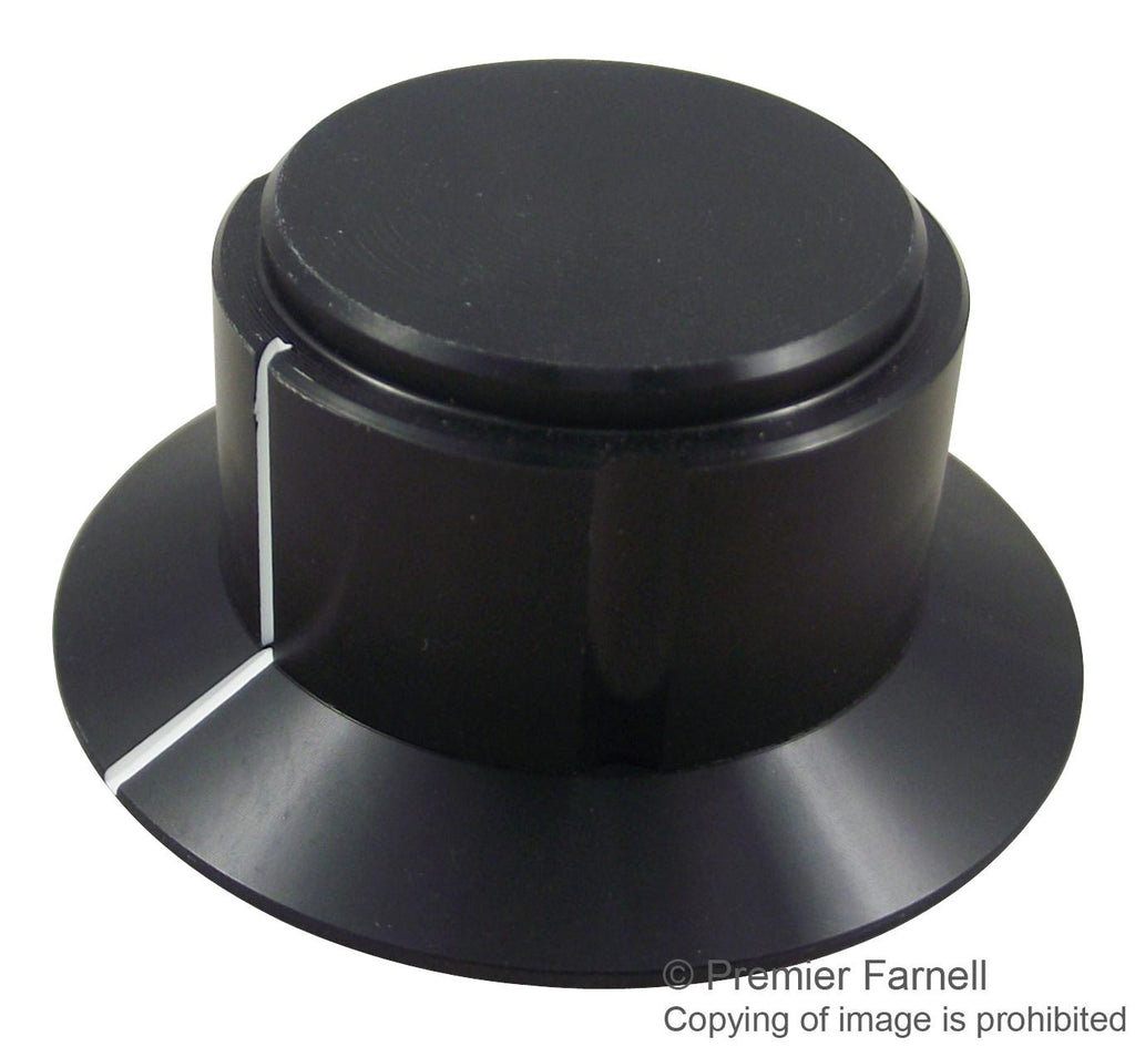 This is a Knob, Round Shaft, 6.4 mm, Aluminium, Round with Indicator Line, 35.5 mm product from MULTICOMP with the model number KB00053