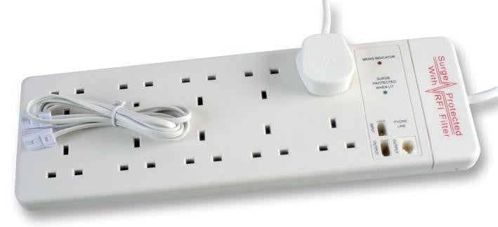 This is a 10 Gang Surge Protected Extension Lead, White 2m product from PRO ELEC with the model number 20810RFI-BT-2M