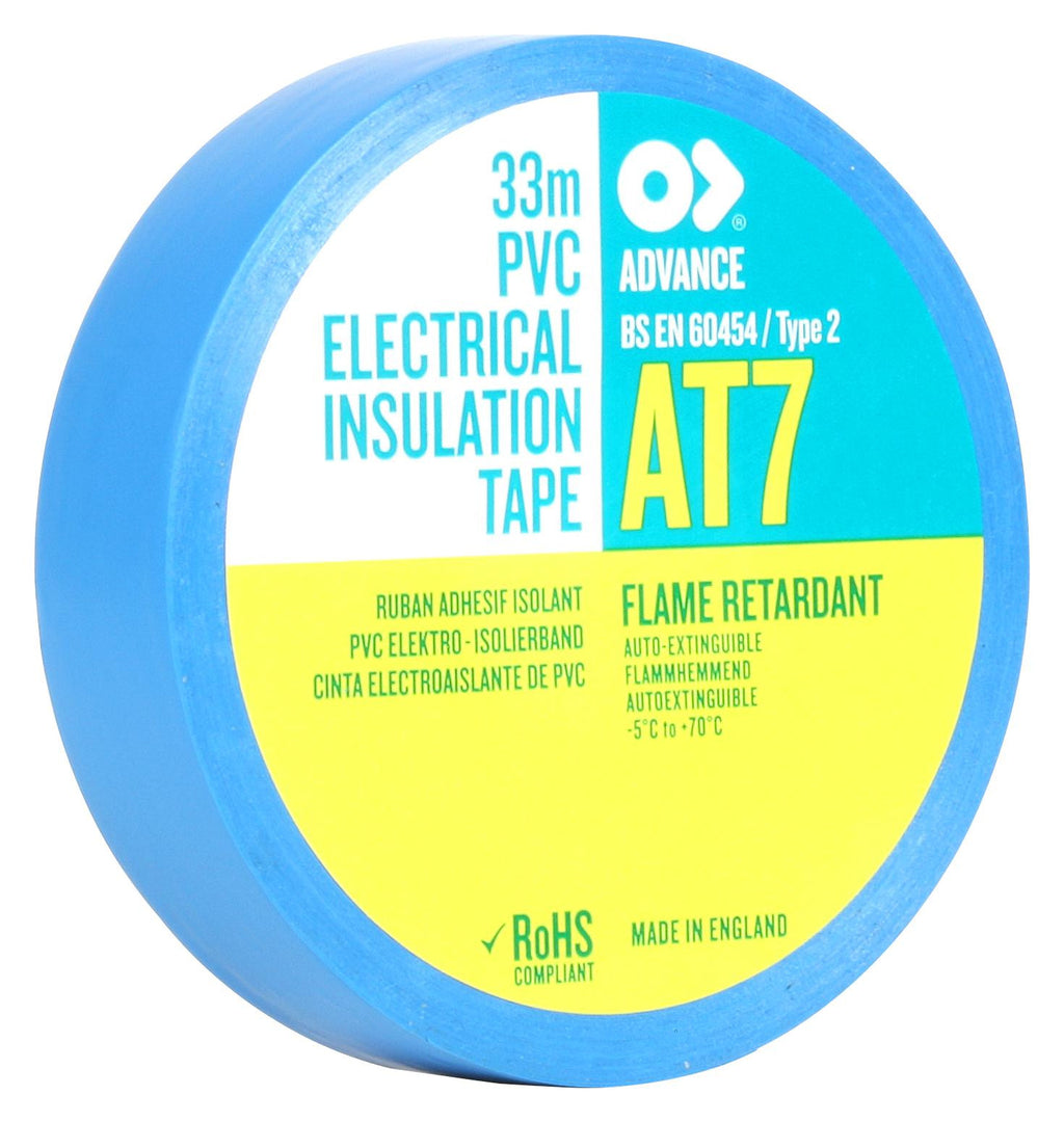 ADVANCE TAPES AT7 BLUE 33M X 19MM Tape, AT7, Insulating, PVC (Polyvinylchloride), 19 mm, 0.75 ", 33 m, 108.27 ft