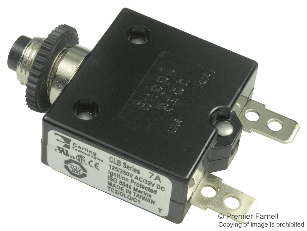 This is a CIRCUIT BREAKER, THERMAL, 1P, 250V, 7A product from CARLING TECHNOLOGIES with the model number CLB-073-11A3N-B-A