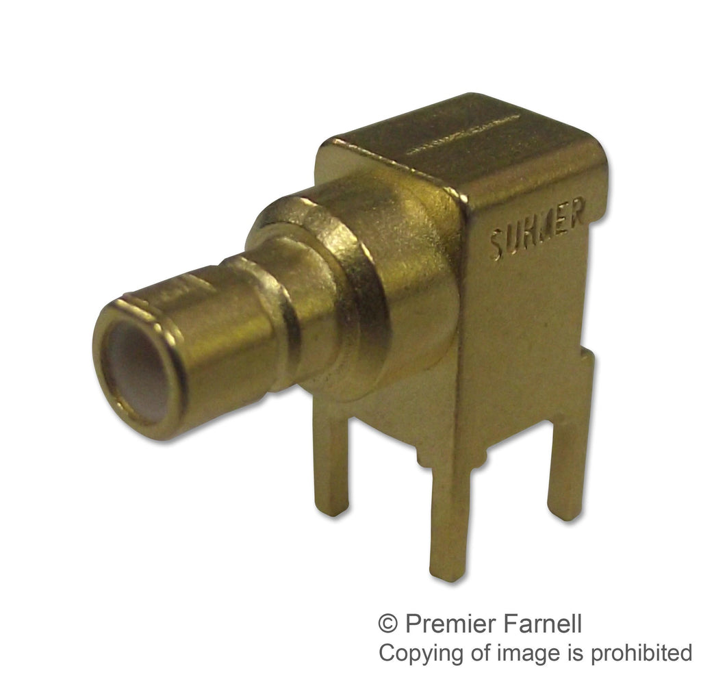 This is a RF / Coaxial Connector, SMB Coaxial, Right Angle Jack, Through Hole Right Angle, 50 ohm, Brass product from HUBER & SUHNER with the model number 85_SMB-Z50-0-19/111_NH