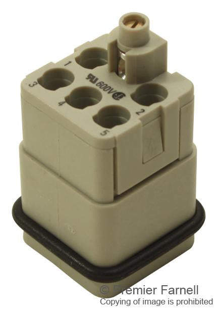 This is a RECTANGULAR HAN INSERT, PLUG, 5+PE, CRIMP product from HARTING with the model number 09120053001
