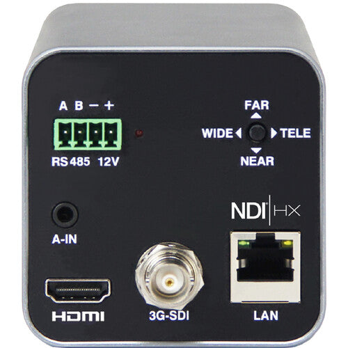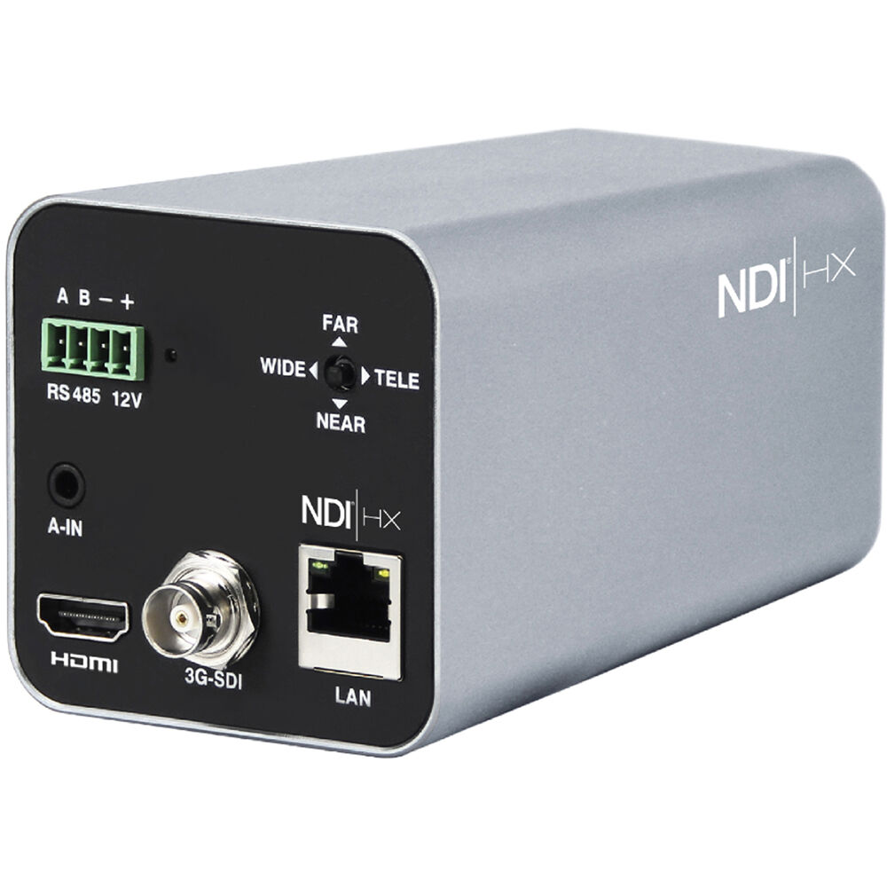 Equipped with a 20x optical zoom, this box-style POV camera enables you to zoom in on activity in the monitoring area for a closer look, and it has a wide field of view for capturing large meeting rooms. You can also input audio for embedding into your stream via the 3.5mm audio input. The camera streams are compatible with any NDI network and tools such as the NDI Studio Monitor, Scan Converter, and Virtual Input, so you can utilize the high-quality, low-bandwidth NDI|HX streams.