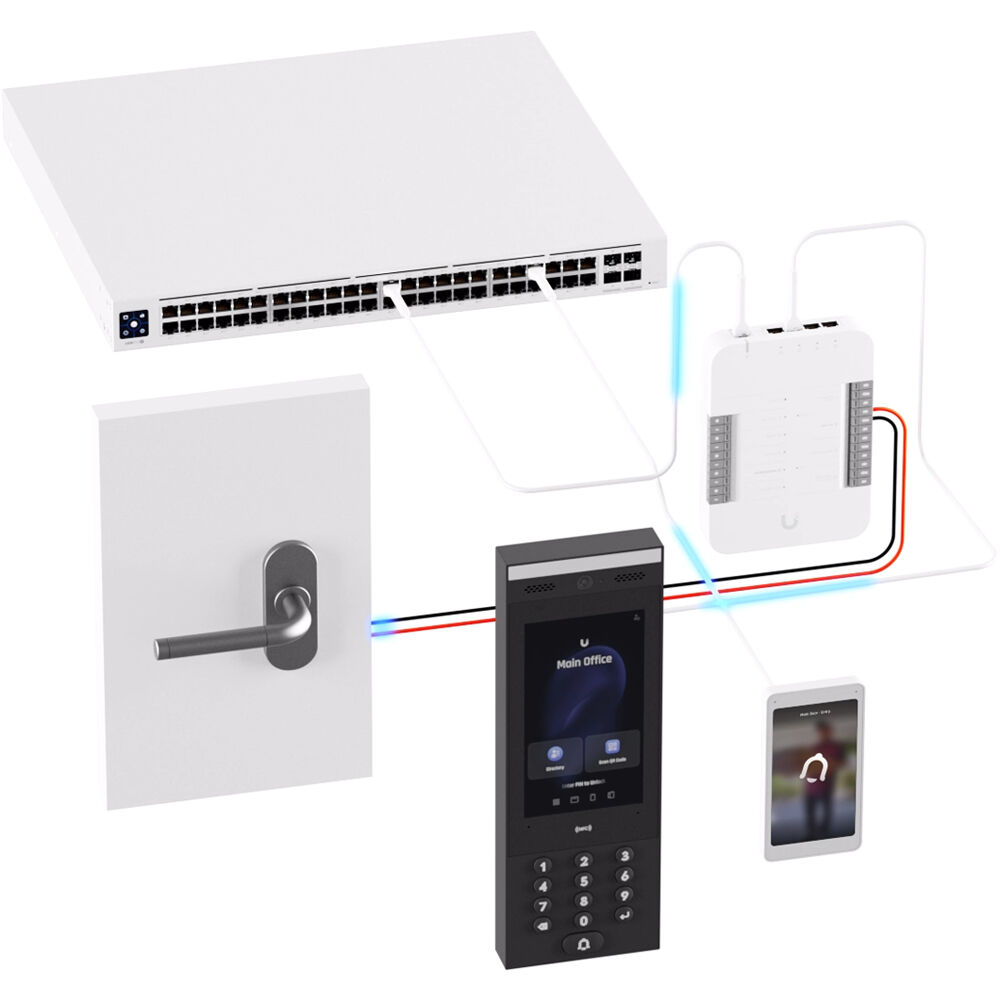 Implement access control, security, and authentication at an entryway with the UniFi Access Intercom from Ubiquiti Networks. This intercom utilizes MIFARE 13.56 MHz technology to provide a 1.2" read range of NFC cards or credentials. An integrated camera captures 1024 x 600 video, while a built-in speaker and microphone enable two-way talk.
