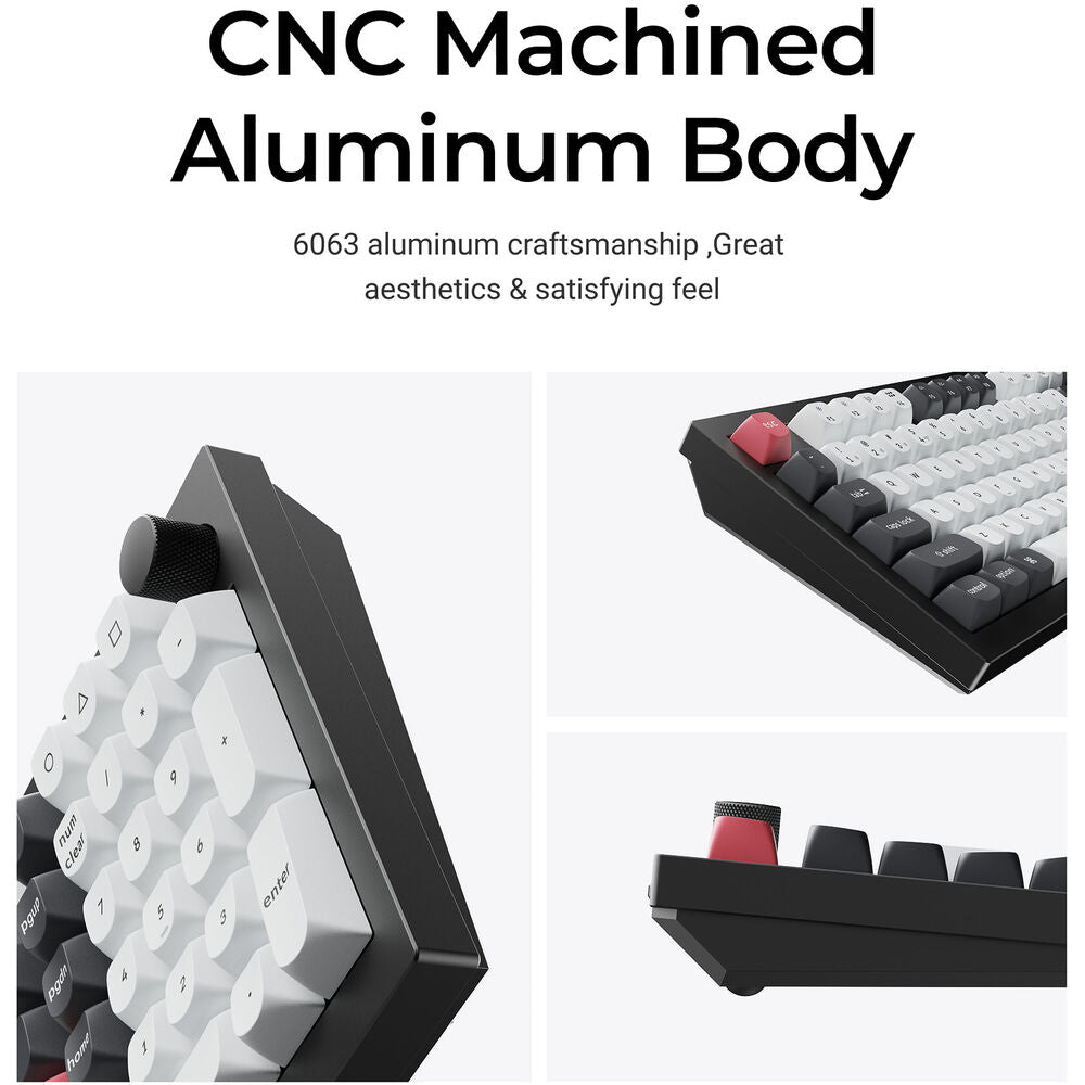 Durable and sleek, the aluminum body is coupled with OSA profiled double-shot PBT keycaps, providing a clean and simple addition to your setup with a fully assembled knob for media control. When connected via USB-C or 2.4 GHz RF, the Q5 has a 1000 Hz polling rate for highly responsive and low-latency inputs. The south facing RGB LEDs lets you choose between 22 backlight modes with customizable hues, saturation, brightness, and effect speeds. This devices is compatible with Windows, macOS, and Linux devices.