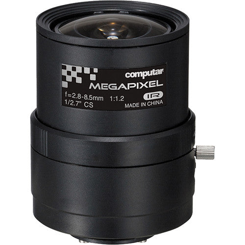 The 5MP CS-Mount 2.8-8.5mm Manual Iris Varifocal Lens from computar is designed for use with 5MP CS-mount cameras with 1/2.7" format sensors. This IR corrected day/night 2.8-8.5mm varifocal lens captures images while eliminating focus shift and infrared bleed. With an aperture of f/1.2 to 16C, this lens is designed to provide enhanced performance in both low-light and bright conditions. An aspherical lens surface allows for corner-to-corner sharpness for all aperture settings.