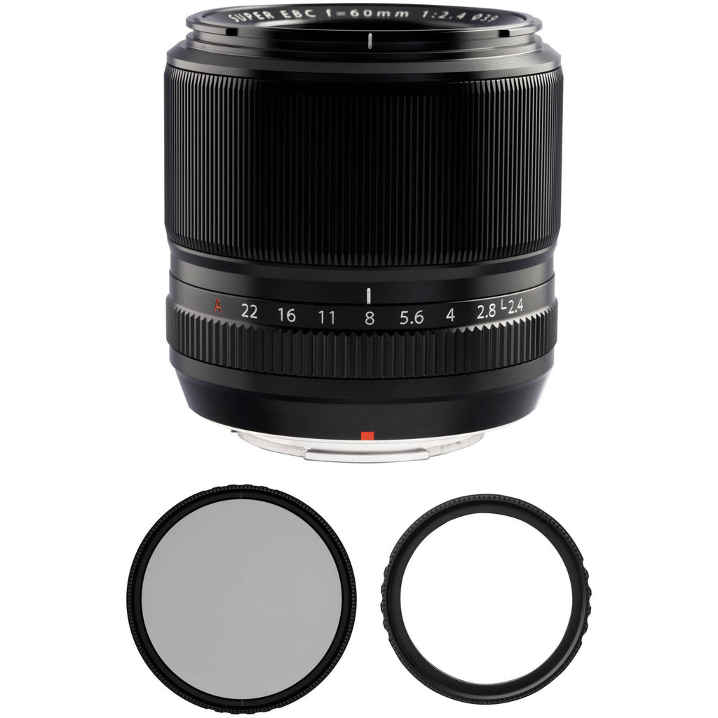 Complementing the lens itself, the FUJIFILM XF 60mm f/2.4 R Macro Lens with UV and Circular Polarizer Filters Kit from bundles the telephoto macro prime with 39mm UV and circular polarizer filters.