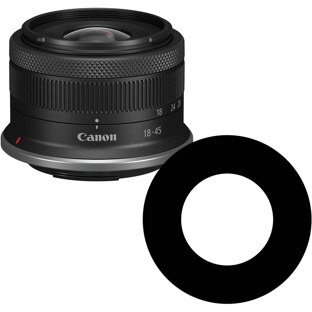 Stop the writing on your Canon RF-S 18-45mm f/4.5-6.3 IS STM lens from appearing in your underwater images with Ikelite's Antireflection Ring. It blocks the aperture, focal length, and other written information on the front element of the lens from being reflected in the interior of the dome port attached to your camera housing. Without the ring, these unwanted reflections could show up in your photos and videos. A self-adhesive vinyl surface enables easy attachment to your lens.