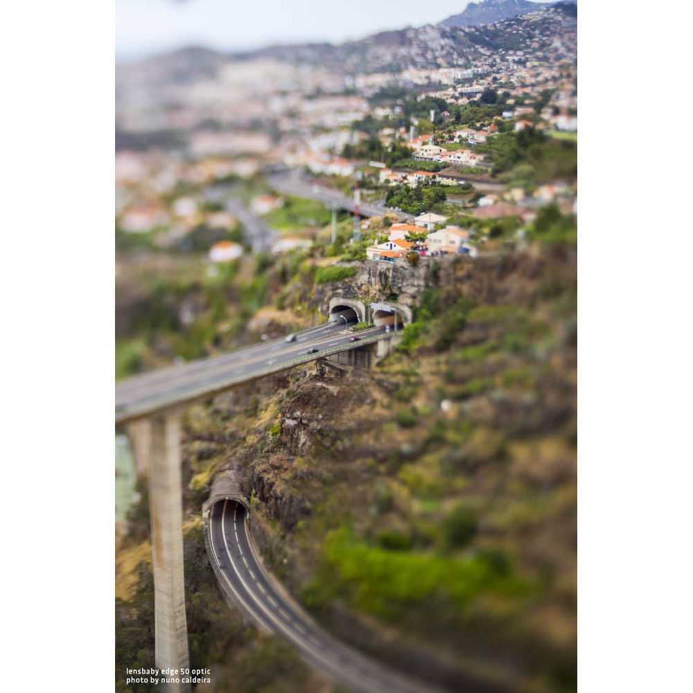 - Edge 50 is a flat field optic that creates a sharp slice of focus surrounded by blur when utilized with tilt. When used straight ahead, the optic functions much like a normal lens.