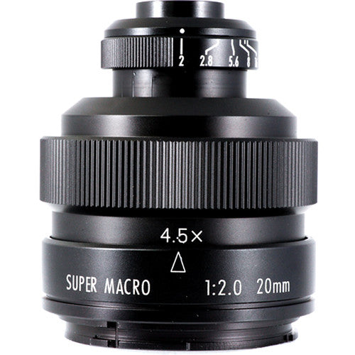 A specialized optic for truly close-up shooting, this 20mm f/2 4.5x Super Macro Lens from Mitakon Zhongyi is designed for Fujifilm X-mount mirrorless cameras. Offering a magnification range of 4.5x to 4x, and a minimum working distance of 0.8", this lens is solely designed for producing greater-than-life-size images of small objects without the need of extension tubes or other accessories. Its compact form-factor makes it ideal for placing into tight or awkward shooting angles and a metal lens barrel offers durability and rigidity.