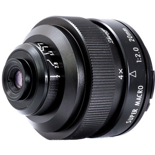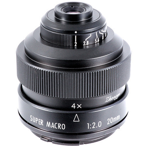 A specialized optic for truly close-up shooting, this 20mm f/2 4.5x Super Macro Lens from Mitakon Zhongyi is designed for Sony E-mount mirrorless cameras. Offering a magnification range of 4.5x to 4x, and a minimum working distance of 0.8", this lens is solely designed for producing greater-than-life-size images of small objects without the need of extension tubes or other accessories. Its compact form-factor makes it ideal for placing into tight or awkward shooting angles and a metal lens barrel offers durability and rigidity.