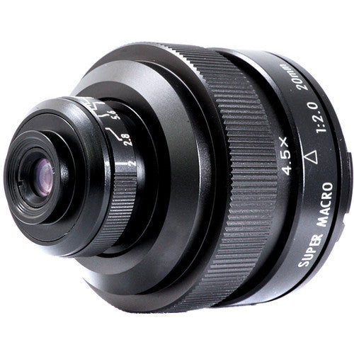 - Specialized super macro lens is designed for working with close-up subjects and provides a maximum magnification of 4.5x and a minimum magnification of 4.0x.