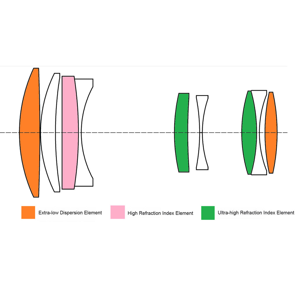 - Composed of high quality ultra-low dispersion elements that form ultra-sharp images with minimal chromatic aberration.