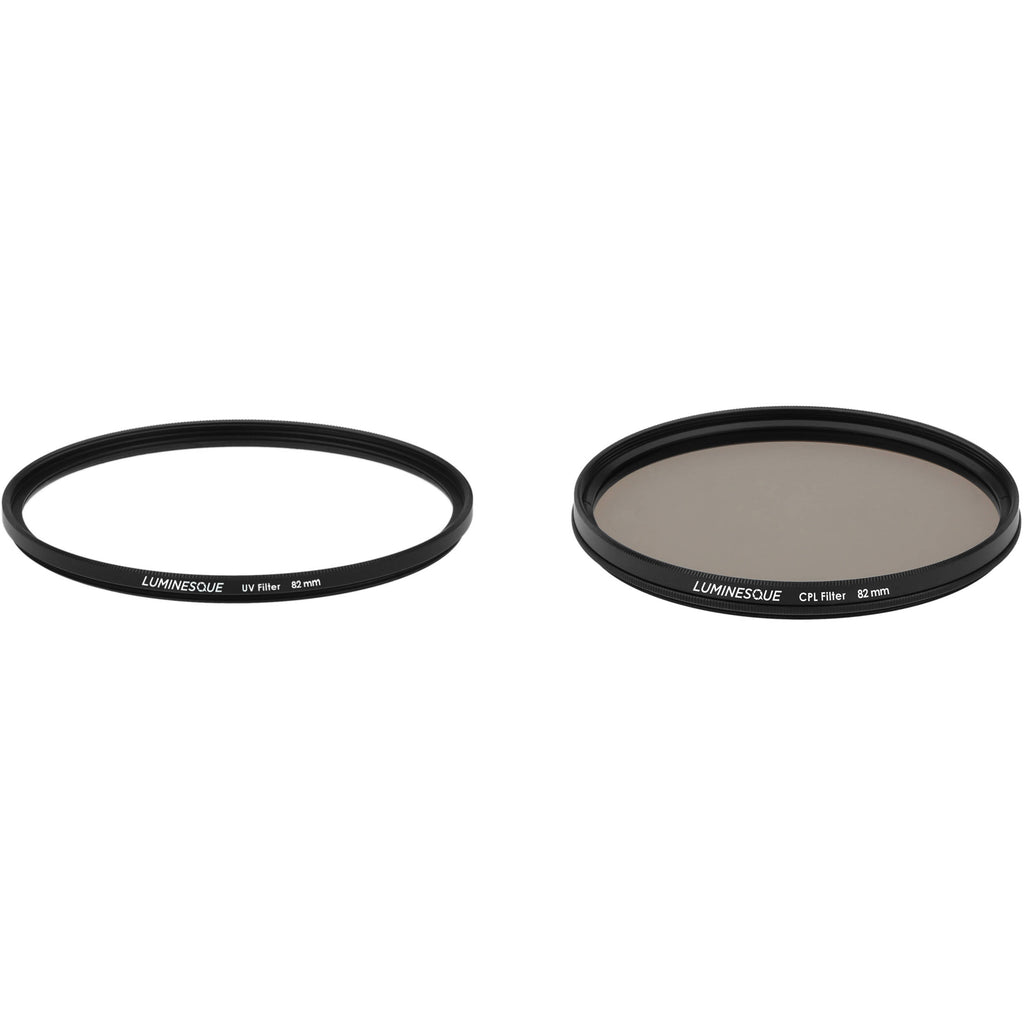 Combining two of the most useful filters available, Luminesque's 82mm Circular Polarizer and UV Slim PRO Filter Kit is well-suited to all forms of photography. Both filters are constructed from Schott optical glass and feature a 12-layer multi-coating for maintained clarity and image quality. Each filter is also set in an anodized aluminum filter ring, with the UV filter featuring a slim 3.4mm-thick profile to lessen the likelihood of vignetting with wide-angle lenses.