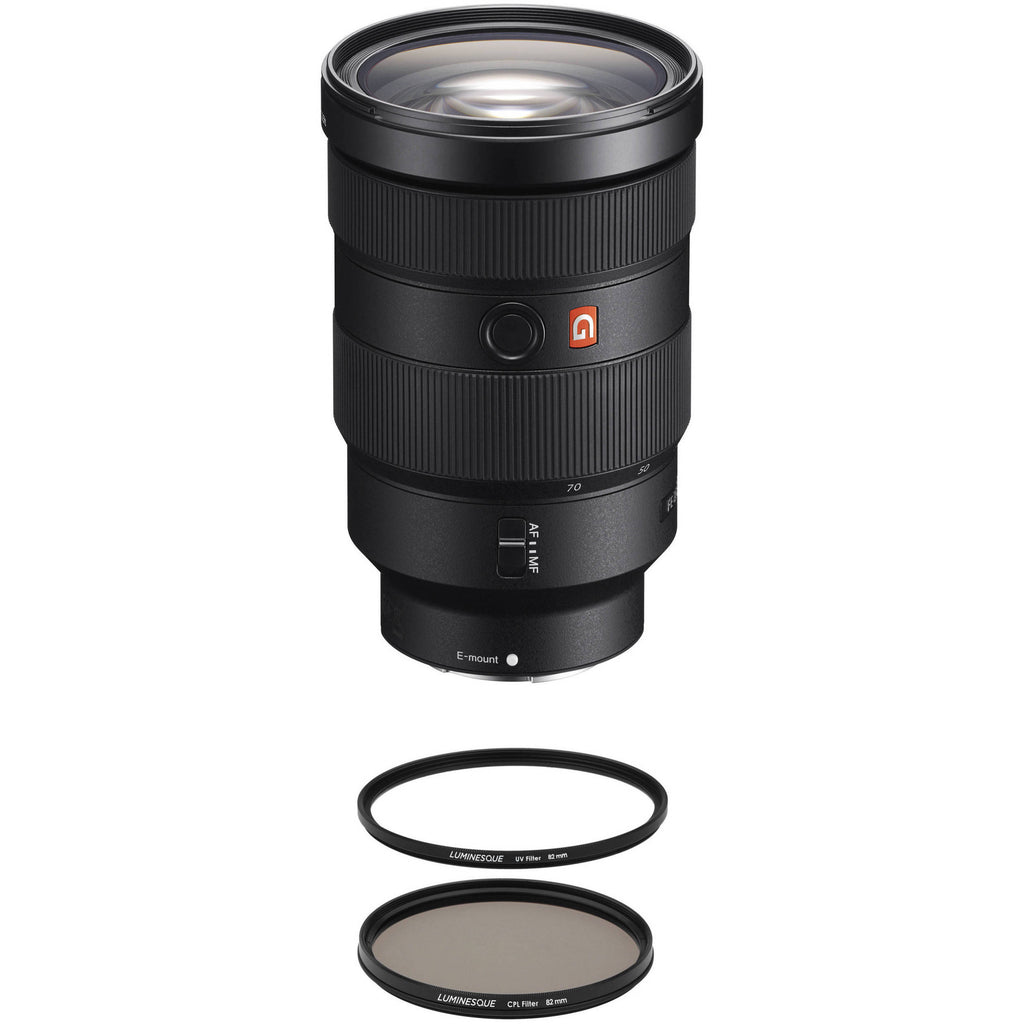 Minimum: f/22Camera Mount Type Sony E Format Compatibility 35mm Film / Full-Frame Digital Sensor Angle of View 84° - 34° Minimum Focus Distance 1.25' / 38 cm Magnification 0.24x Maximum Reproduction Ratio 1:4.17 Optical Design 18 Elements in 13 Groups Diaphragm Blades 9, Rounded Features Autofocus Yes Physical Filter Thread Front: 82 mm Dimensions (DxL) 3.45 x 5.35" / 87.6 x 136 mm Weight 1.95 lb / 886 g Packaging Info Box Dimensions (LxWxH) 8.4 x 5.7 x 5.0" - Luminesque 82mm Circular Polarizer and UV Slim PRO Filter Kit