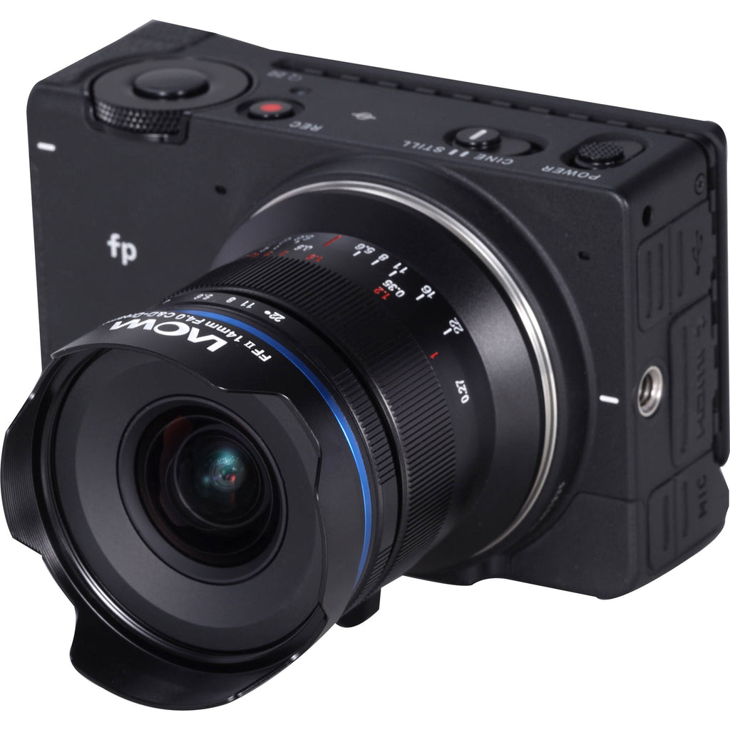 L-Mount Lens/Full-Frame FormatAperture Range: f/4 to f/22Two Aspherical Elements, One UHR ElementThree Extra-Low Dispersion Elements Marrying an ultra-compact form factor with an ultra-wide field of view, the Leica L-mount Laowa 14mm f/4 FF RL from Venus Optics is a sleek prime lens with distinctly low distortion and rectilinear rendering to suit interior, architecture, astrophotography, nature, and landscape applications. The broad 114° angle of view is aided by an advanced optical design, which includes aspherical, high refractive index, and low dispersion elements, to realize well-corrected, sharp, and color-accurate imagery. The lens has a manual focus design and permits working with subjects as close as 10.6" away and its built-in petal-shaped hood helps to block stray light from causing unwanted lens flare.