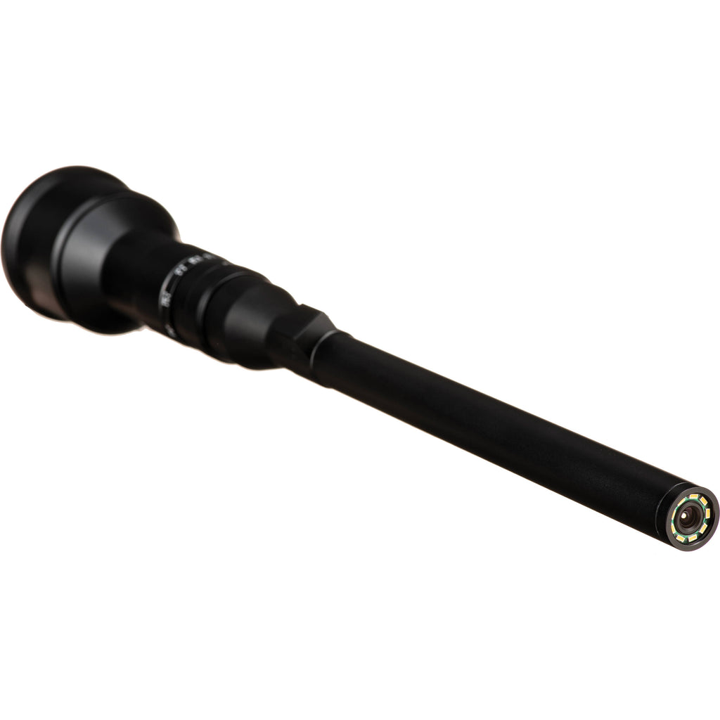 The optical design includes both extra-low dispersion and extra refractive index elements, which help to suppress chromatic and spherical aberrations for a high degree of clarity, color accuracy, and sharpness. Manual focus control permits focusing from 1.5' to infinity, and the front of the lens has a built-in LED ring light to aid in focusing at close distances. The slim 0.2" diameter of the front of the lens barrel also offers greater opportunities for lighting subjects from the front. Additionally, the front portion of the lens is waterproof, and permits working with subjects just beneath the surface of water or in other dusty or trying environments.