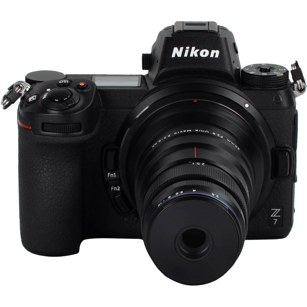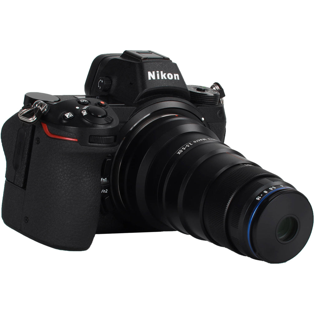 Dedicated to extreme close-up imaging, the Nikon Z-mount Laowa 25mm f/2.8 2.5-5X Ultra Macro from Venus Optics is a specialized macro lens for photographing subjects at magnifications greater than life-size. Operating within a 2.5:1 to 5:1 range, this lens has a minimum focus distance of just 6.8" at the 5:1 magnification along with a comfortable 1.6" working distance. This range is benefitted by the wide-angle focal length, too, in order to achieve greater depth of field compared to long focal length macro lenses. Complementing the close-up capabilities, the optical design incorporates one extra-low dispersion element to reduce color fringing and chromatic aberrations for a high degree of clarity. Additionally, distinguishing itself from other macro lenses, this 25mm f/2.8 is characterized by its notably sleek and lightweight design for easier handling and more room to work with artificial lighting.