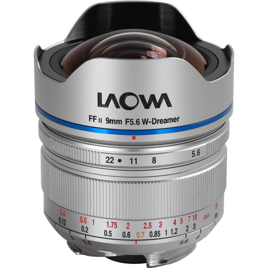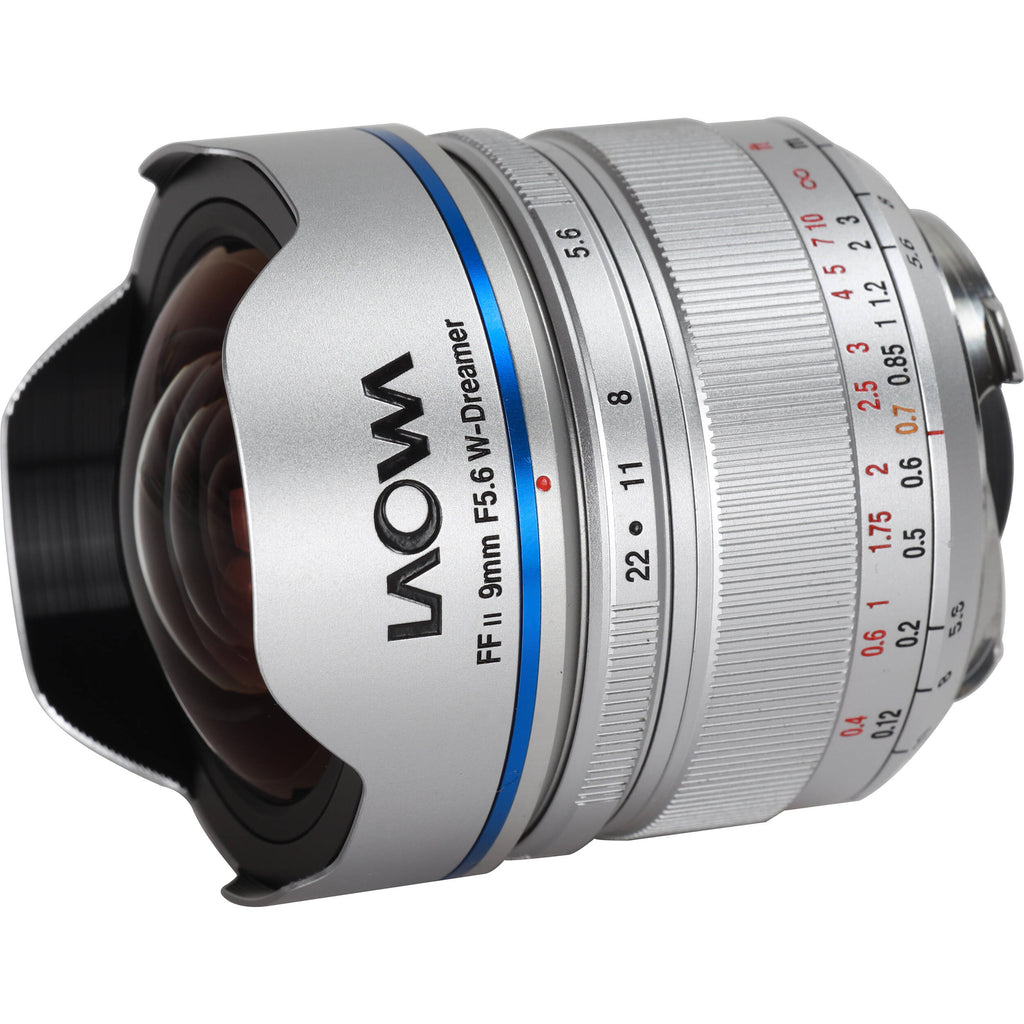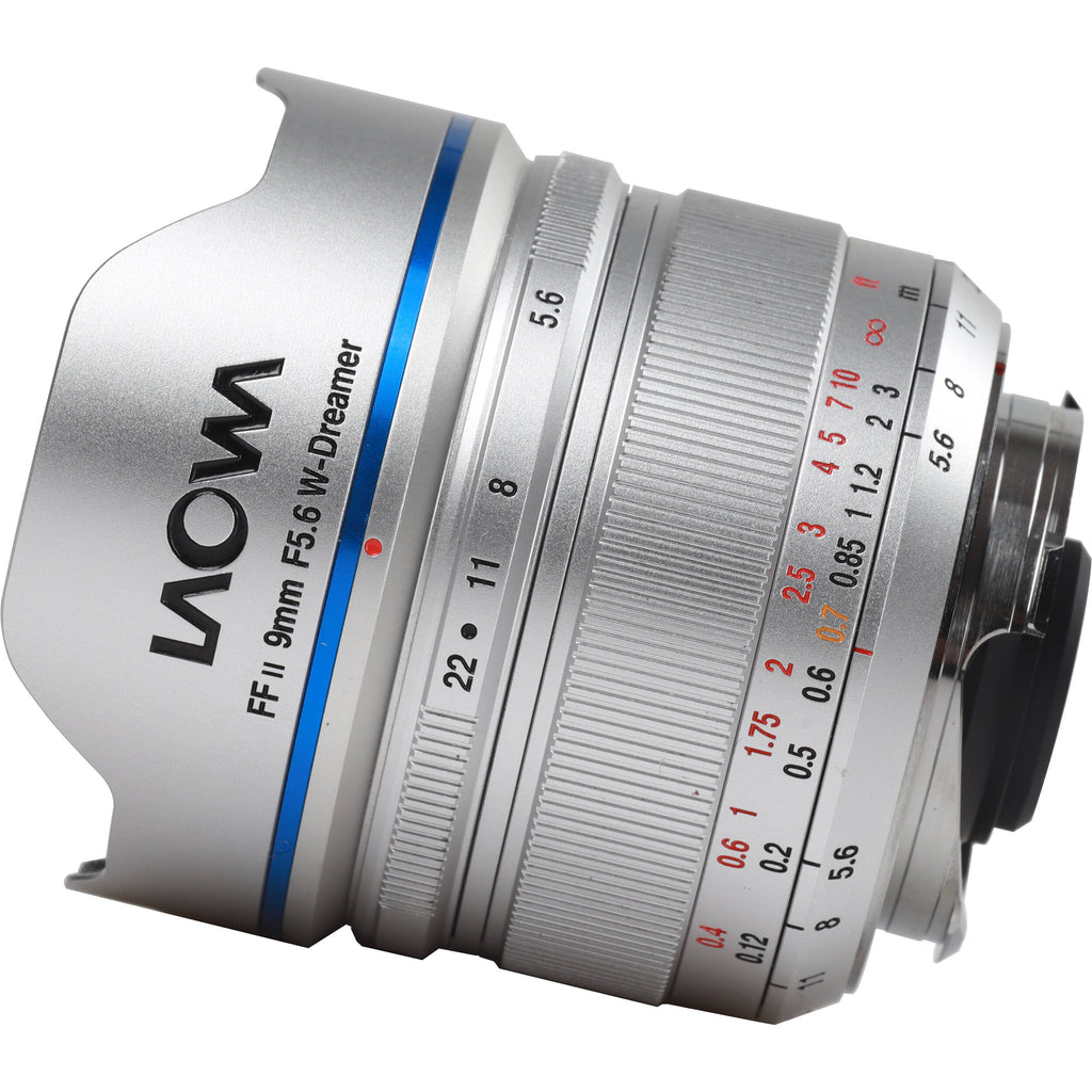 Leica M-Mount LensAperture Range: f/5.6 to f/22Two Extra-Low Dispersion ElementsTwo Aspherical and Two UHR Elements Characterized by its extremely wide field of view and rectilinear rendering, the silver Leica M-mount Laowa 9mm f/5.6 FF RL , from Venus Optics , is prime lens offering a uniquely wide perspective that is well-suited for interior, architecture, nature, and landscape subjects. The immense 135° angle of view is complemented by an advanced optical design that uses low dispersion, aspherical, and high refractive index elements to control a variety of aberrations and distortion to achieve high sharpness, clarity, and color accuracy. The lens has a manual focus design and permits working with subjects as close as 4.7" away and its built-in petal-shaped hood helps to block stray light from causing unwanted lens flare. Additionally, the lens is also characterized by its especially compact size, which makes it ideal for walk-around and travel applications.