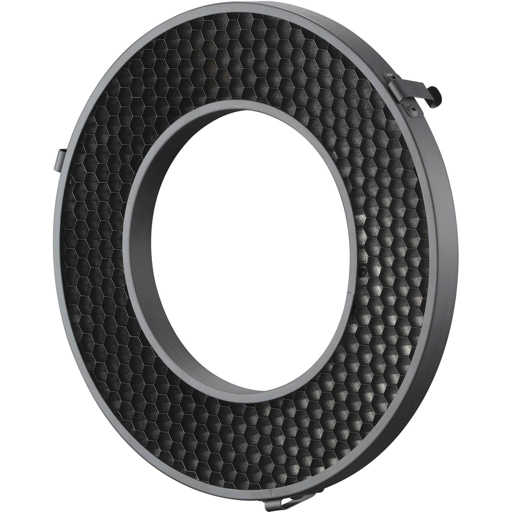 Featuring aluminum construction, the 40° Honeycomb Grid for R200 Ring Flash Head Body from Godox narrows the head's wide beam spread, eliminates spill light, and provides the directional control necessary for selective lighting.