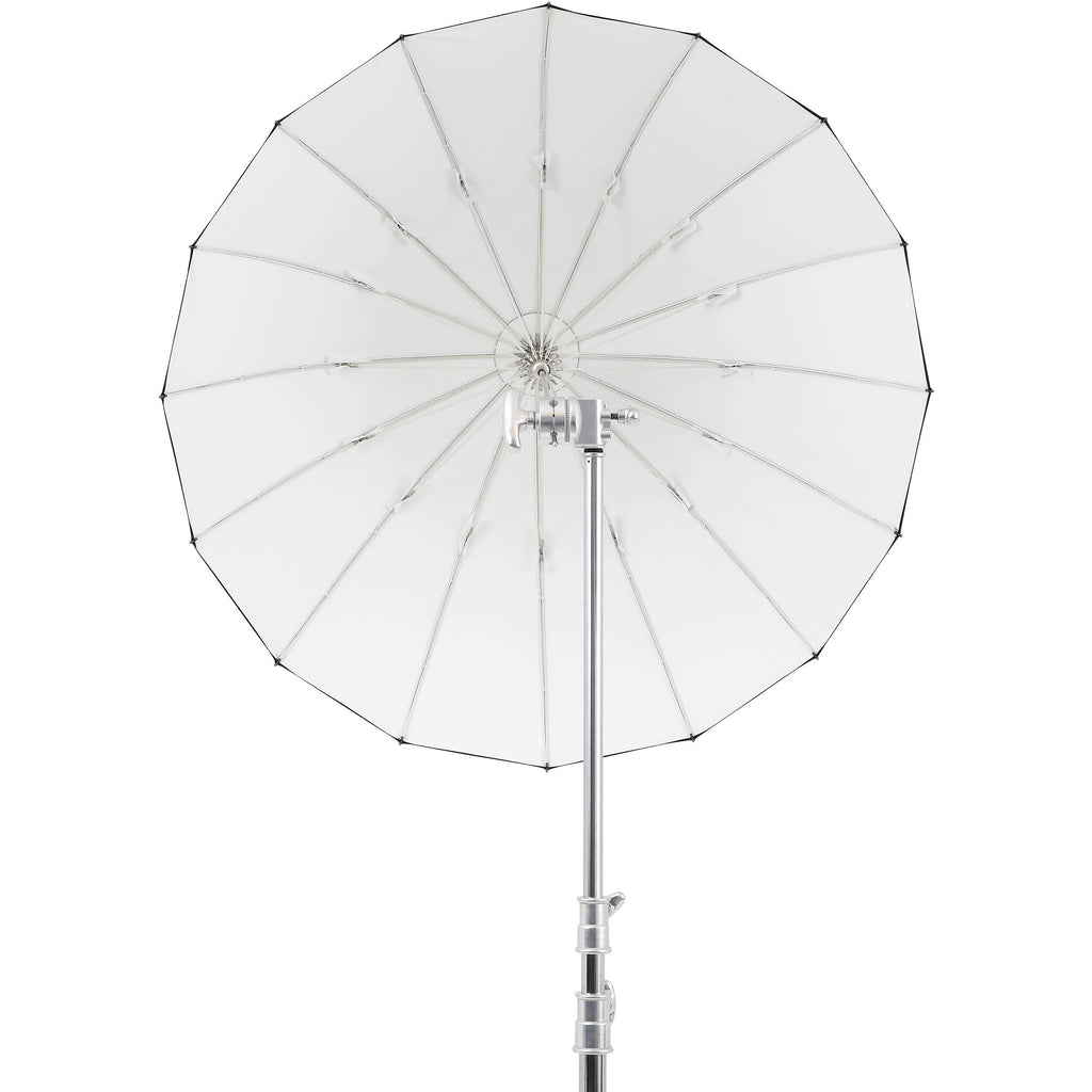 The 41.3" Diameter White Parabolic Umbrella from Godox is a deep modifier that allows the light source to which it's attached to be moved to the front or back along the shaft to "focus" the light from flood to spot. The parabolic shape is well-known for its sharp falloff that provides directional control, while its white interior provides a soft bounce without any color cast.