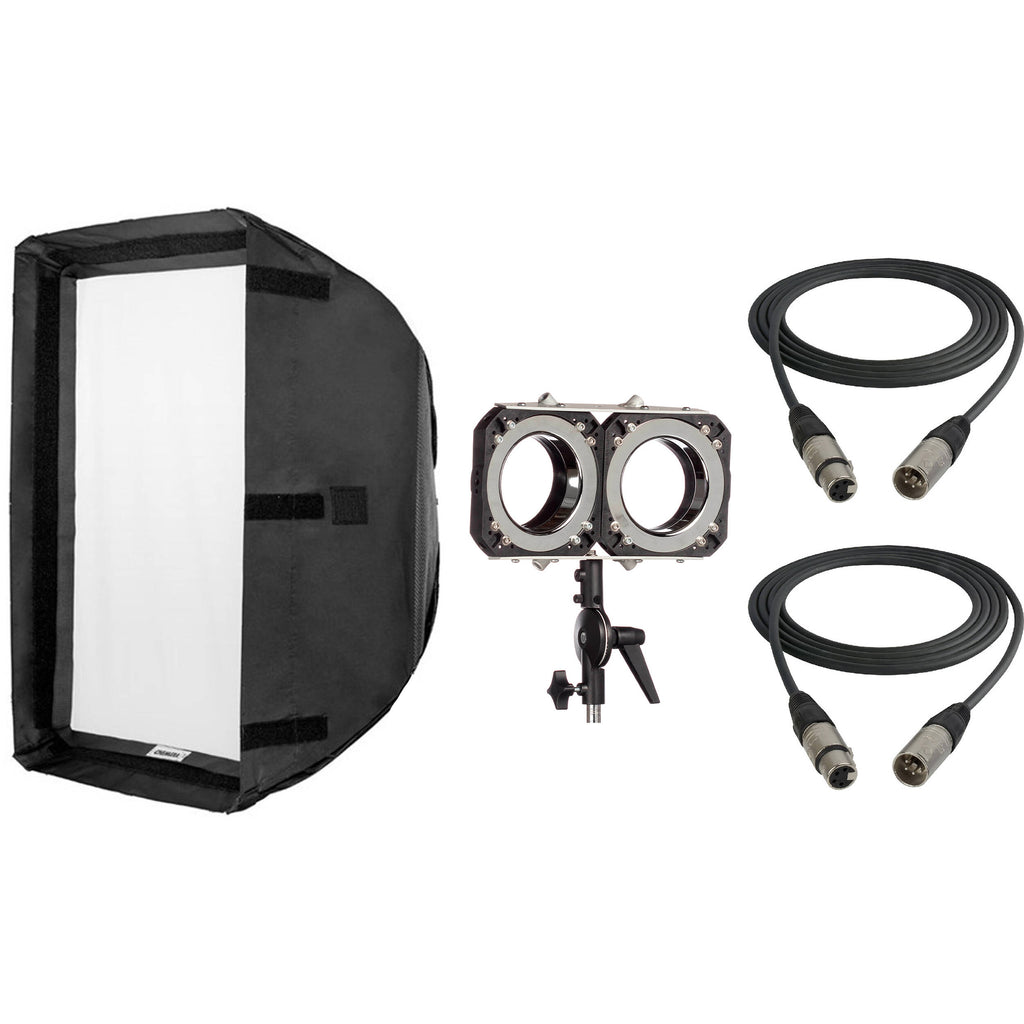 HIVE has put together this Double Wasp 100-C Collapsible Softbox Kit so you can double your power while reducing the bright quality of the LEDs. The kit includes two 100-C variable color lamp heads, each with a power supply. Also included is a Photo Mount Double Header so you can mount the lights next to each other and an XS softbox through which you can project the output.