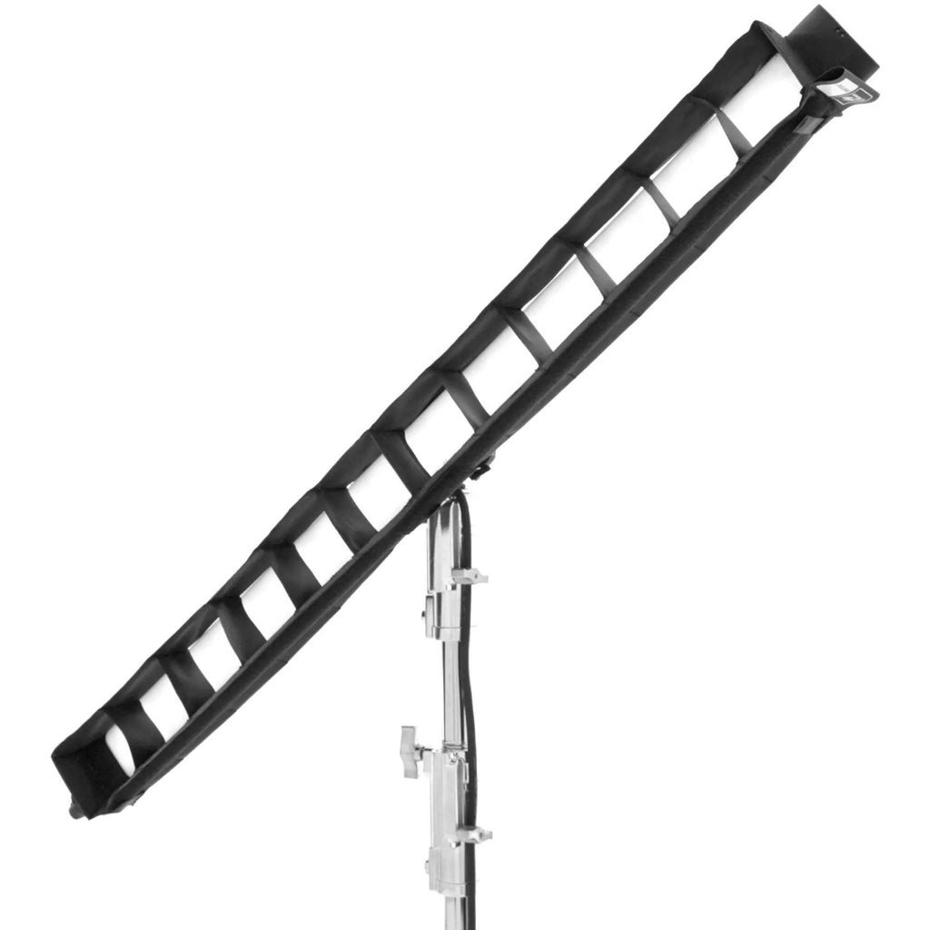 The 4', 40° Snapgrid Egg Crate for Double Rainbow from Quasar Science attaches directly to the Double Rainbow, narrows the light's beam spread, controls spill light, softens the light quality, and adds the directional control necessary for selective lighting. The Snapgrid derives its name from its ability to "snap" open in seconds for use. Made of pre-stretched, fireproof fabric with a stainless-steel frame, the Snapgrid folds down quickly and stows in the included carry bag.