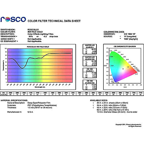 - Rosco #08 Filter - Pale Gold - 48" x 25' Roll