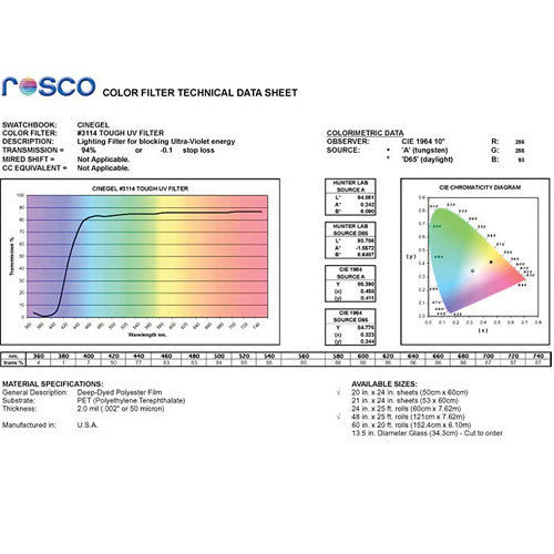 - Rosco #3114 Tough UV Cinegel Filter (24" x 50' Roll)